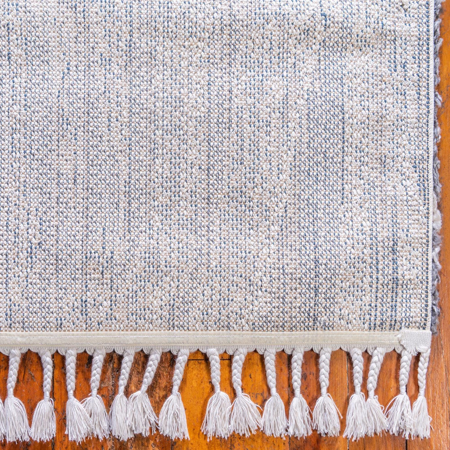A plush, high-pile shag with a softly distressed, abstract medallion pattern, this rug pairs a gray background with warm beige and ivory accents for a calm, layered look. The long, dense polypropylene fibers feel cushiony and spring back when pressed, giving a tactile, cozy surface underfoot. Hand-tied fringe along the ends adds a casual, handcrafted touch that complements the rug’s relaxed patterning. Machine made from 100% polypropylene, it combines a wool-like appearance with consistent construction.
