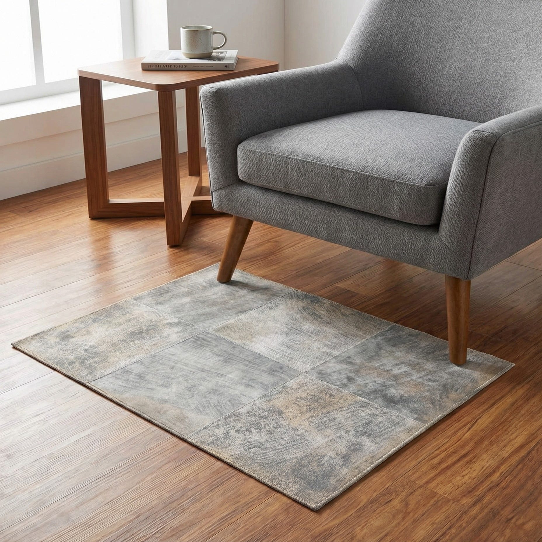 Primary color is Gray. Colors in this rug include: Gray, Beige.