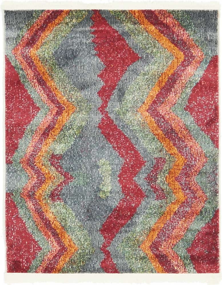 Primary color is Gray. Colors in this rug include: Gray, Blue, Orange, Purple, Pink, Red, Ivory.