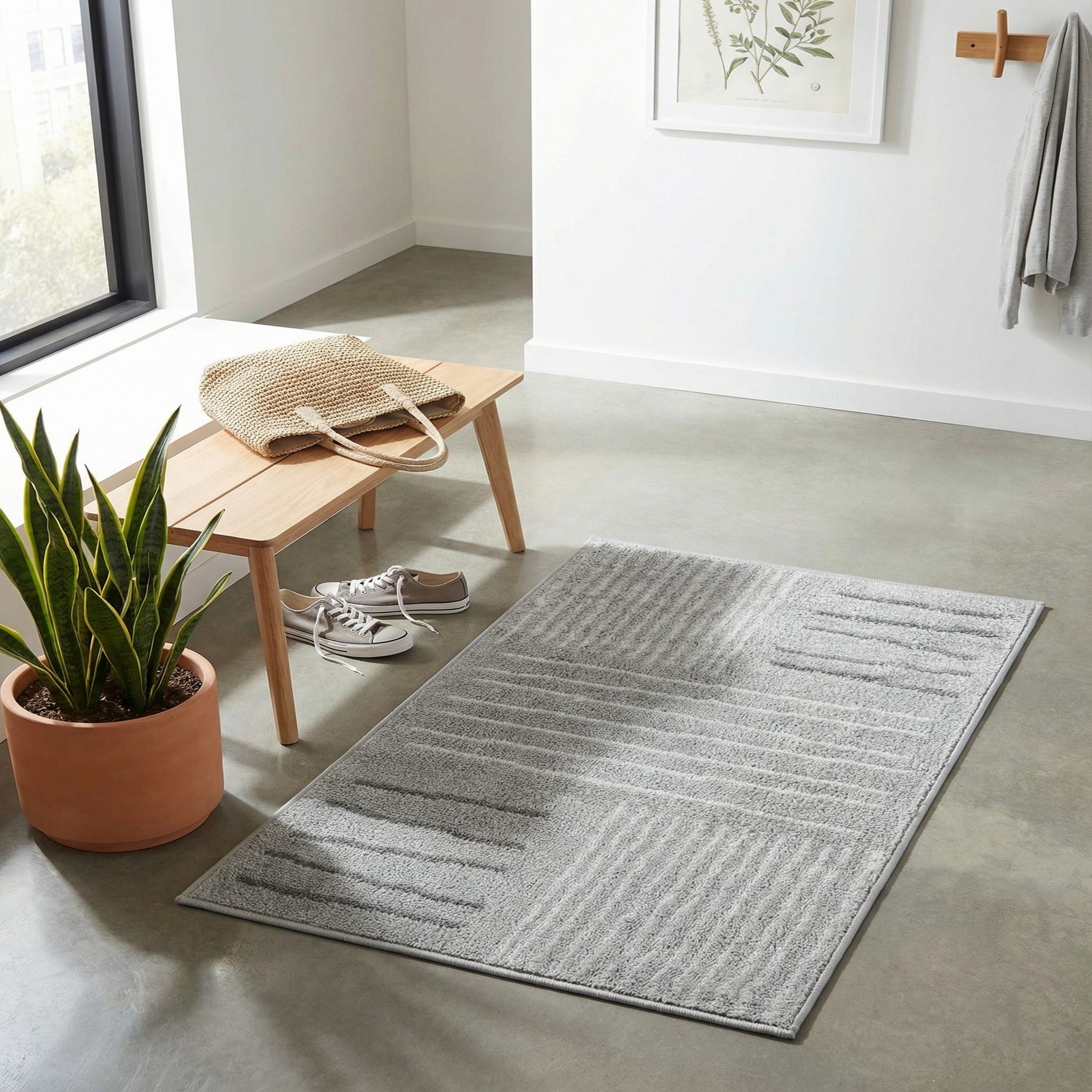 Thanks to the neutral color palette and contemporary design, this rug is suited for a range of interior settings. It can complement minimalist decors, serve as a grounding element in Scandinavian-inspired spaces, or add a touch of refinement to a modern industrial scheme. Ideally placed in an entryway, home office, or beside a bed, this versatile rug can effortlessly enhance the aesthetic of your living space.