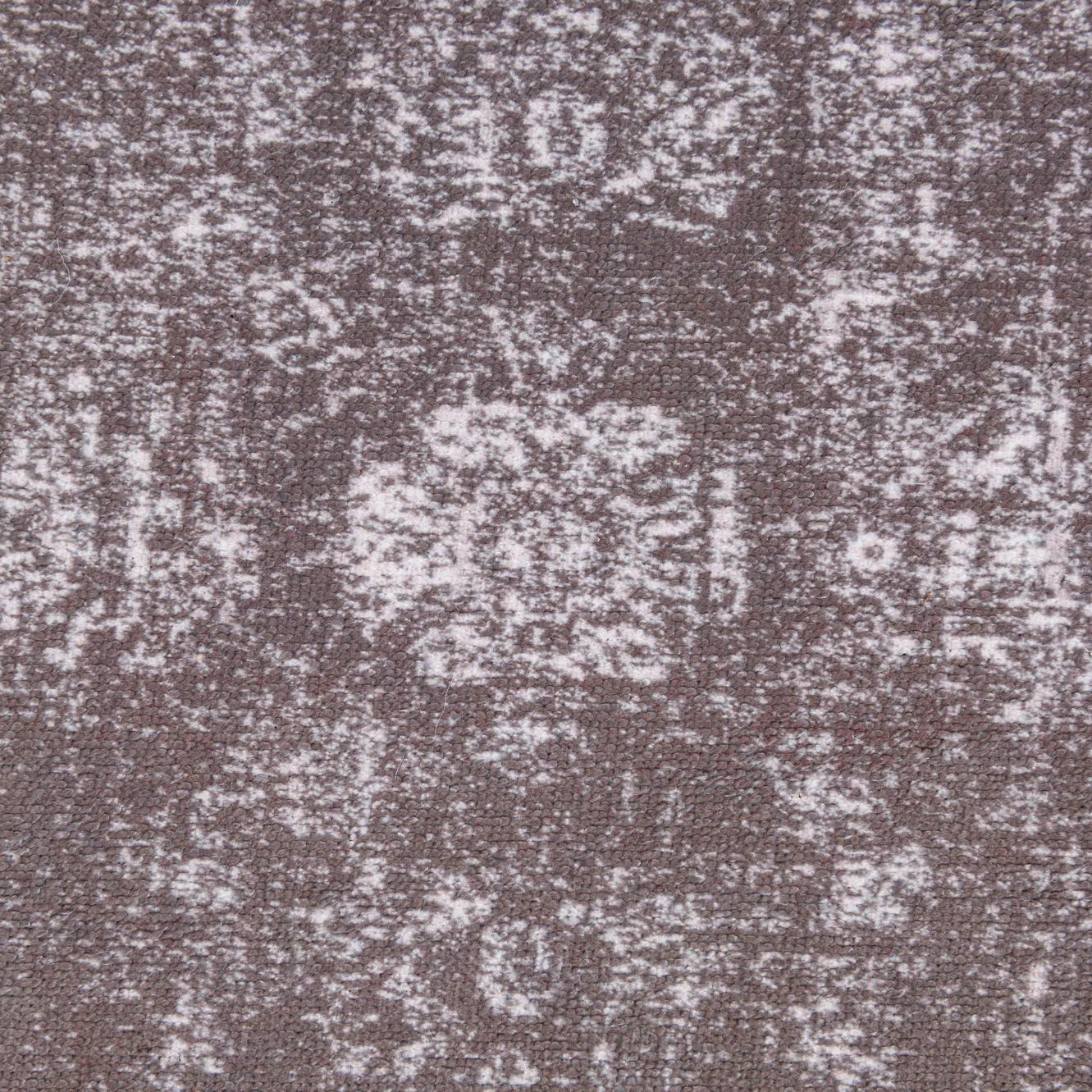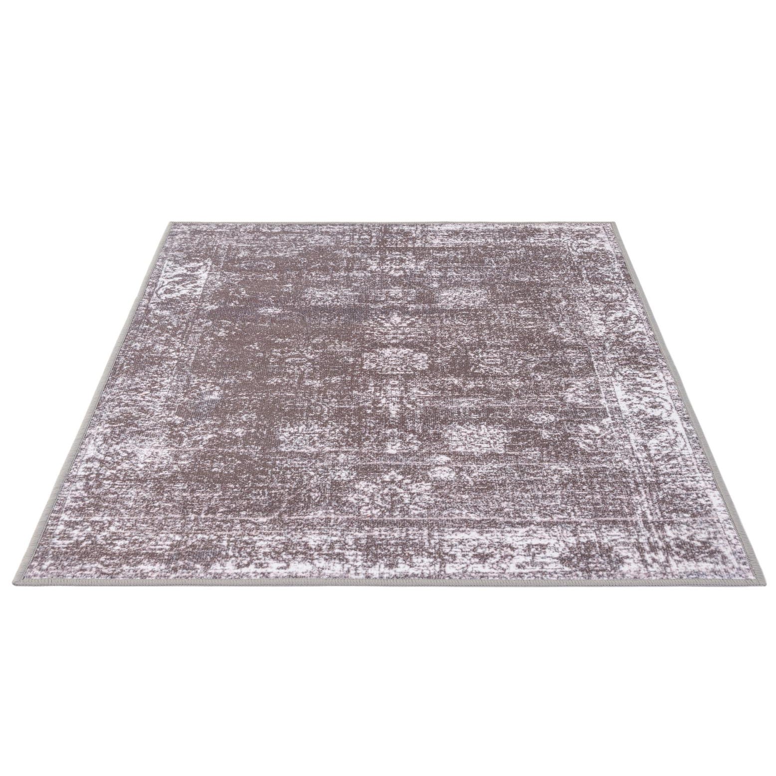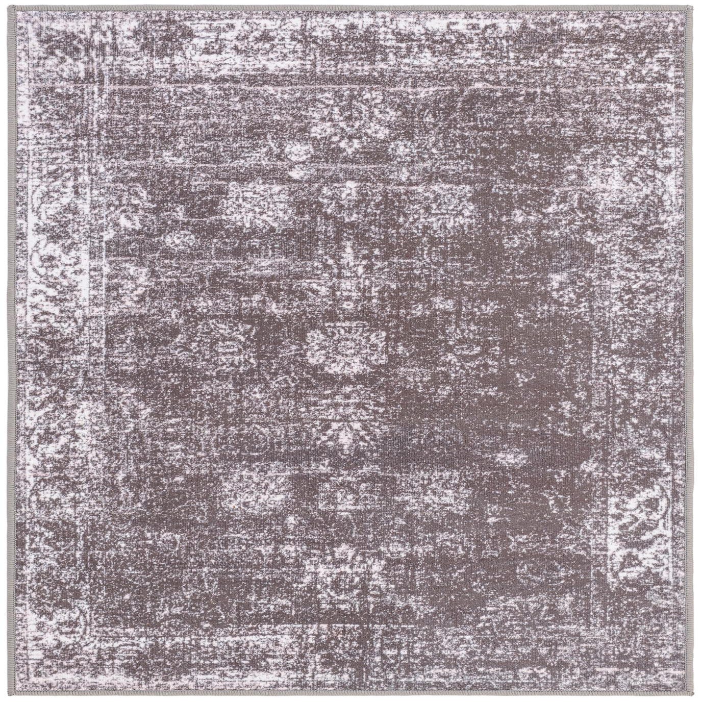 A 2x3 rectangular gray and silver vintage area rug with a faded oriental medallion pattern.
