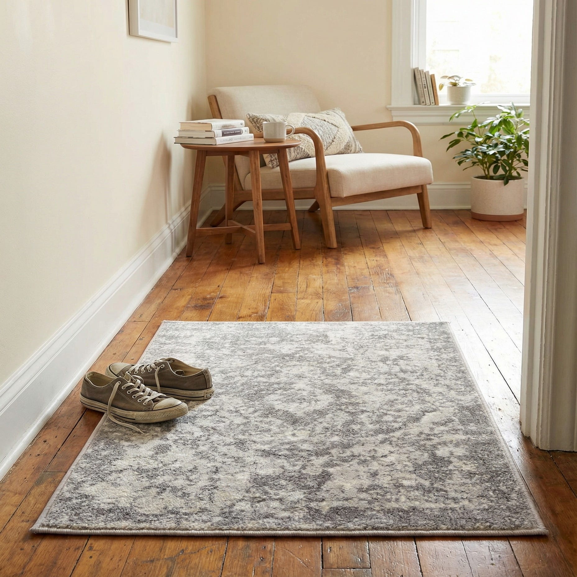 Machine made from 85% polypropylene and 15% polyester, the pile has a low-to-medium profile that feels smooth and comfortably cushioned underfoot; the polyester adds a gentle sheen while the polypropylene keeps the surface stable. This rug works well in contemporary and transitional spaces—place it beneath a neutral seating group to ground a living room, layer it at the foot of a bed or beside a bed for a soft landing in the bedroom, or use it in a home office to tie together cool metals and warm woods. Pair with ivory linens, charcoal accents, and natural textures for a cohesive, relaxed palette.