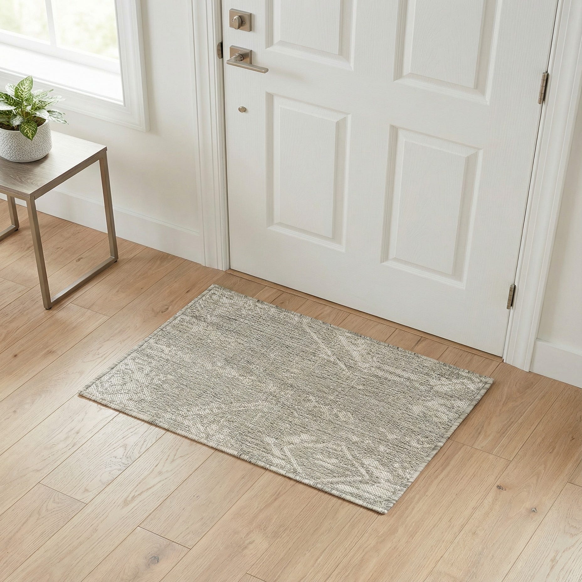 Color-wise, the gray and ivory combination is adaptable to numerous décor themes, from minimalist and contemporary to more eclectic and bohemian settings. Use this rug to anchor small seating areas, add warmth to balconies, or lend an artistic touch to compact patios.