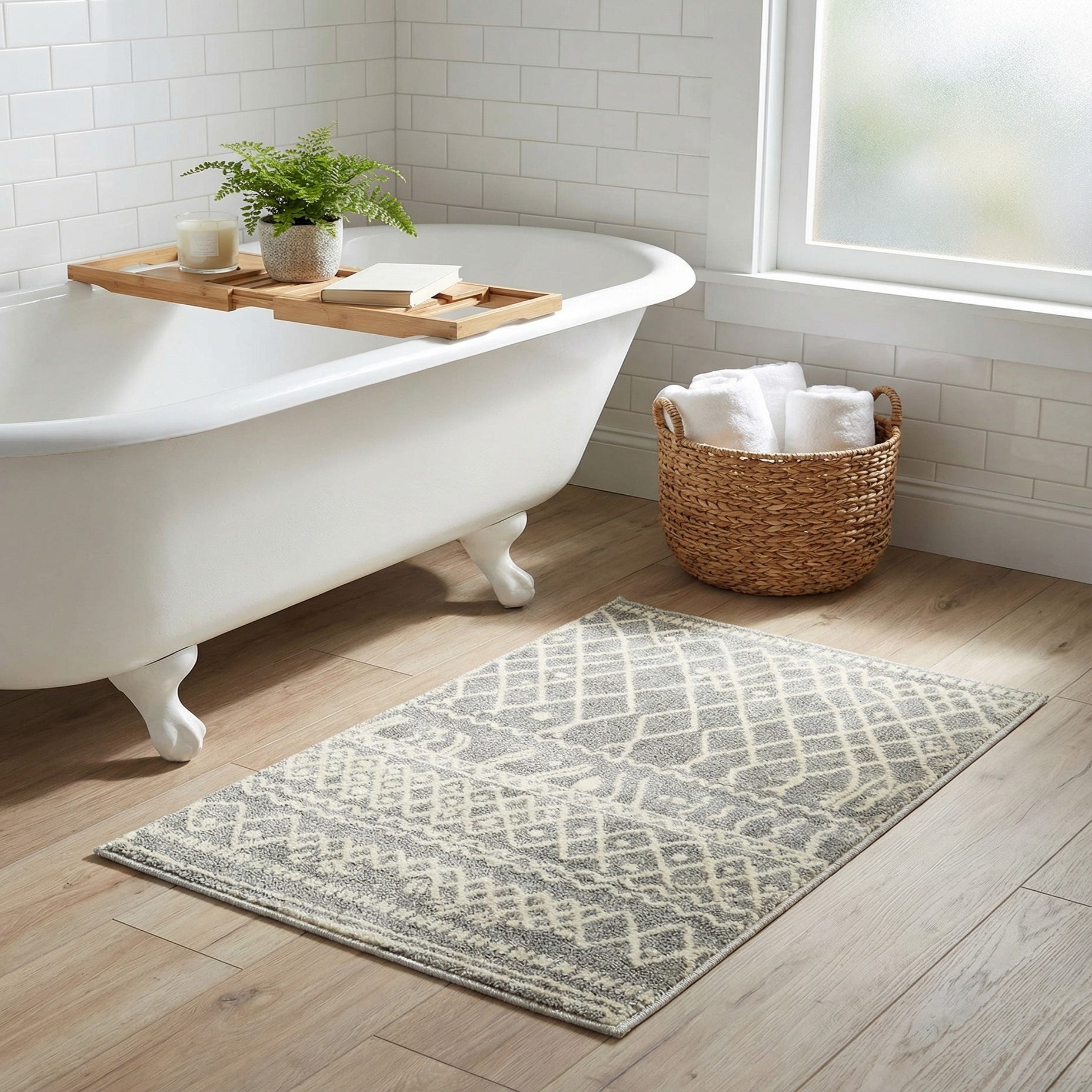 Machine-made from 100% polypropylene, the rug offers a low-to-medium pile that feels soft underfoot while holding its shape in everyday settings. Its gray and ivory tones pair well with modern farmhouse, Scandinavian, or transitional interiors — use it to anchor a cozy reading nook, layer it in a living room for added pattern, or place it by an entry or bedside to bring warmth and subtle visual interest to compact spaces.