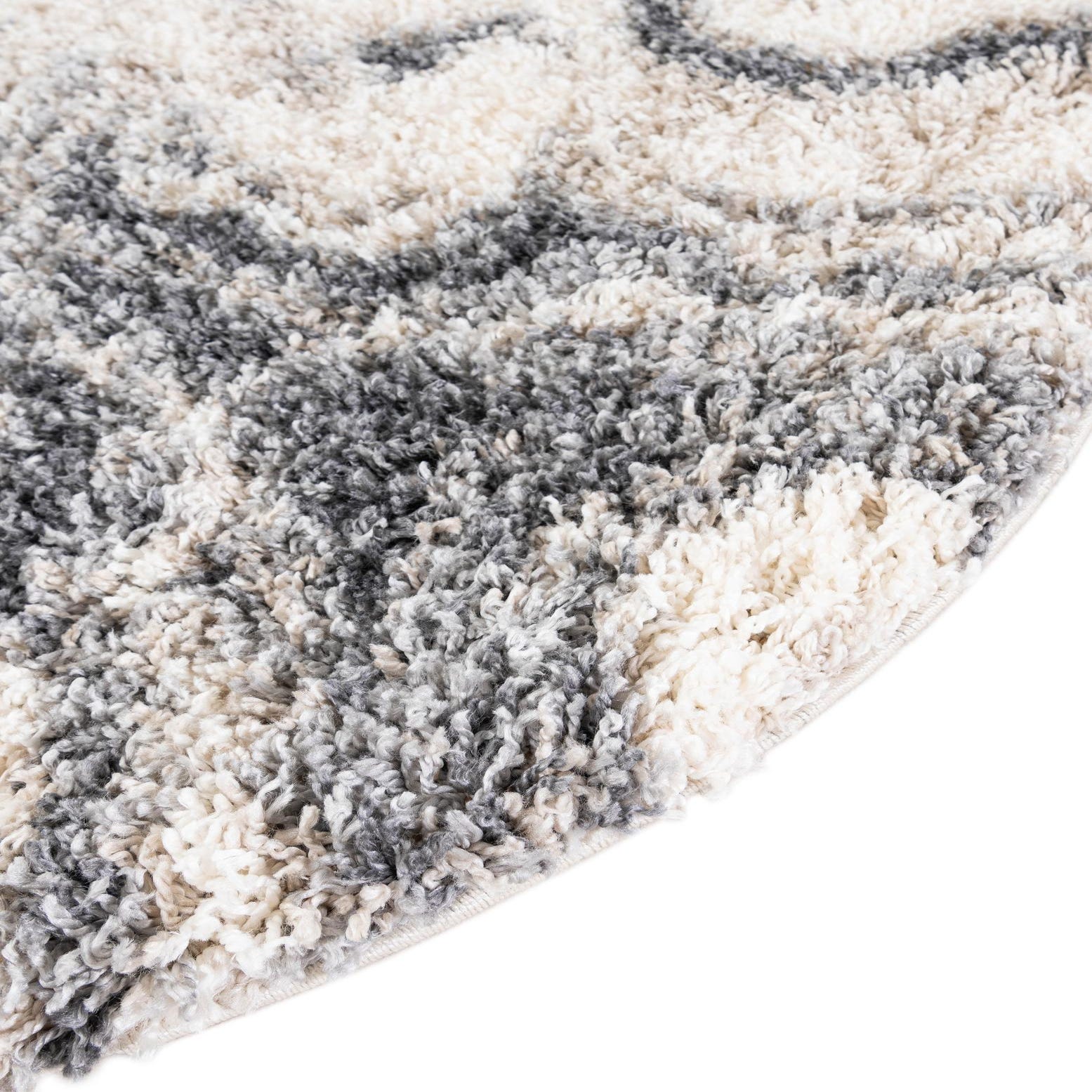 The pile is a deep, plush shag made from 100% polypropylene and produced by machine for consistent texture and durability. Run your hand across it and you’ll feel a cushioned, cozy surface that invites bare feet. Place this round rug beneath a small seating group or a bedside chair to anchor the space, tuck it under a round cafe table for a soft dining nook, or use it in a reading corner to add warmth and layered texture to neutral, modern farmhouse, or casual transitional interiors.