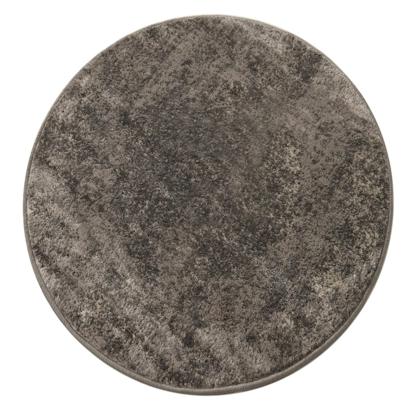 A 3' 0 x 3' 0 round gray shabby-chic rug with a distressed, textured pattern, suitable for various indoor spaces.