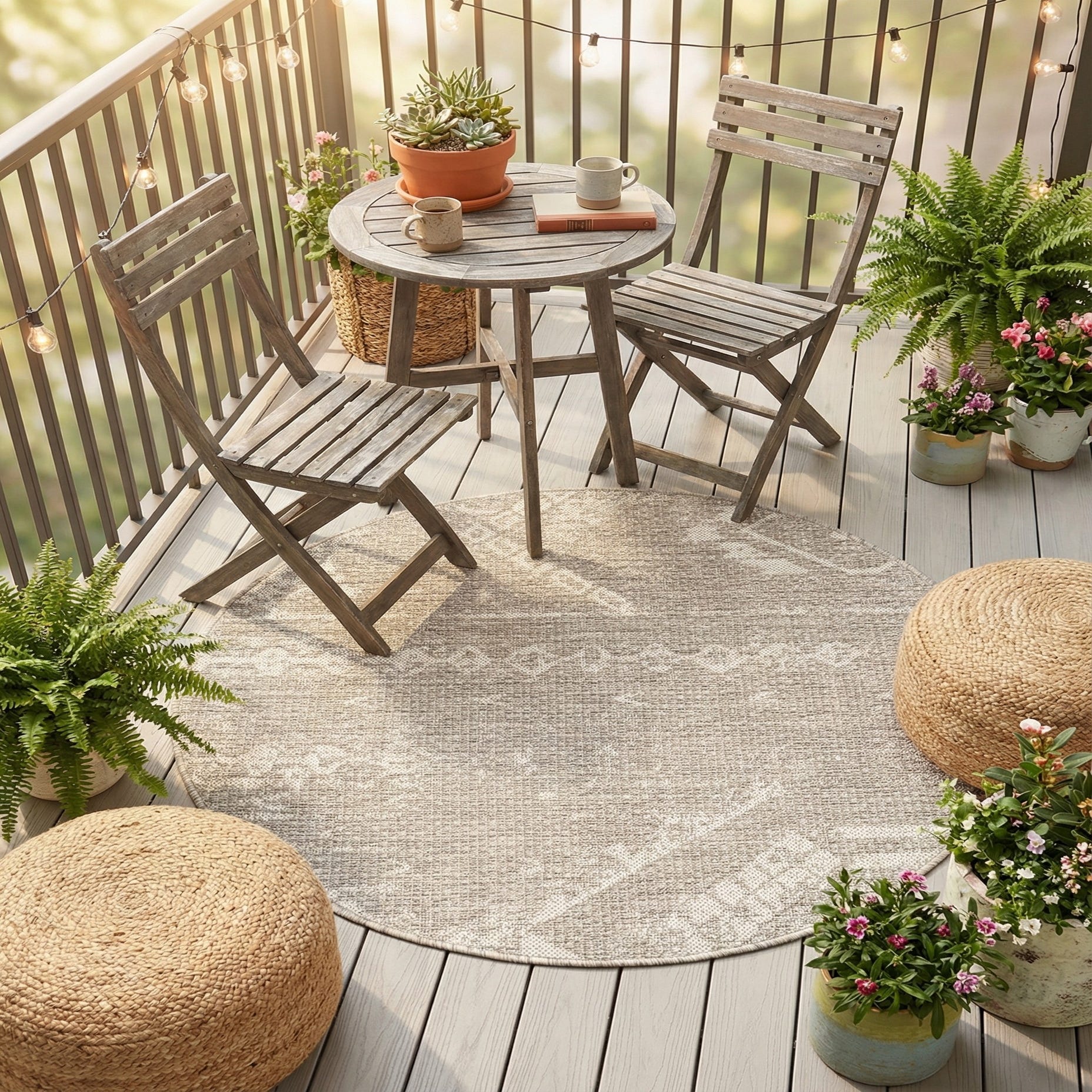 This rug works well in casual indoor and covered outdoor settings — think a sunroom, covered porch, balcony, or a cozy breakfast nook. It also fits naturally in mudrooms, entryways, or under a small bistro table. Pair it with light woods, woven seating, linen textiles, and potted greenery to enhance its laid-back, layered style. Machine-made construction and polypropylene fiber make it an easy companion for higher-traffic areas where you want an unfussy, stylish foundation.