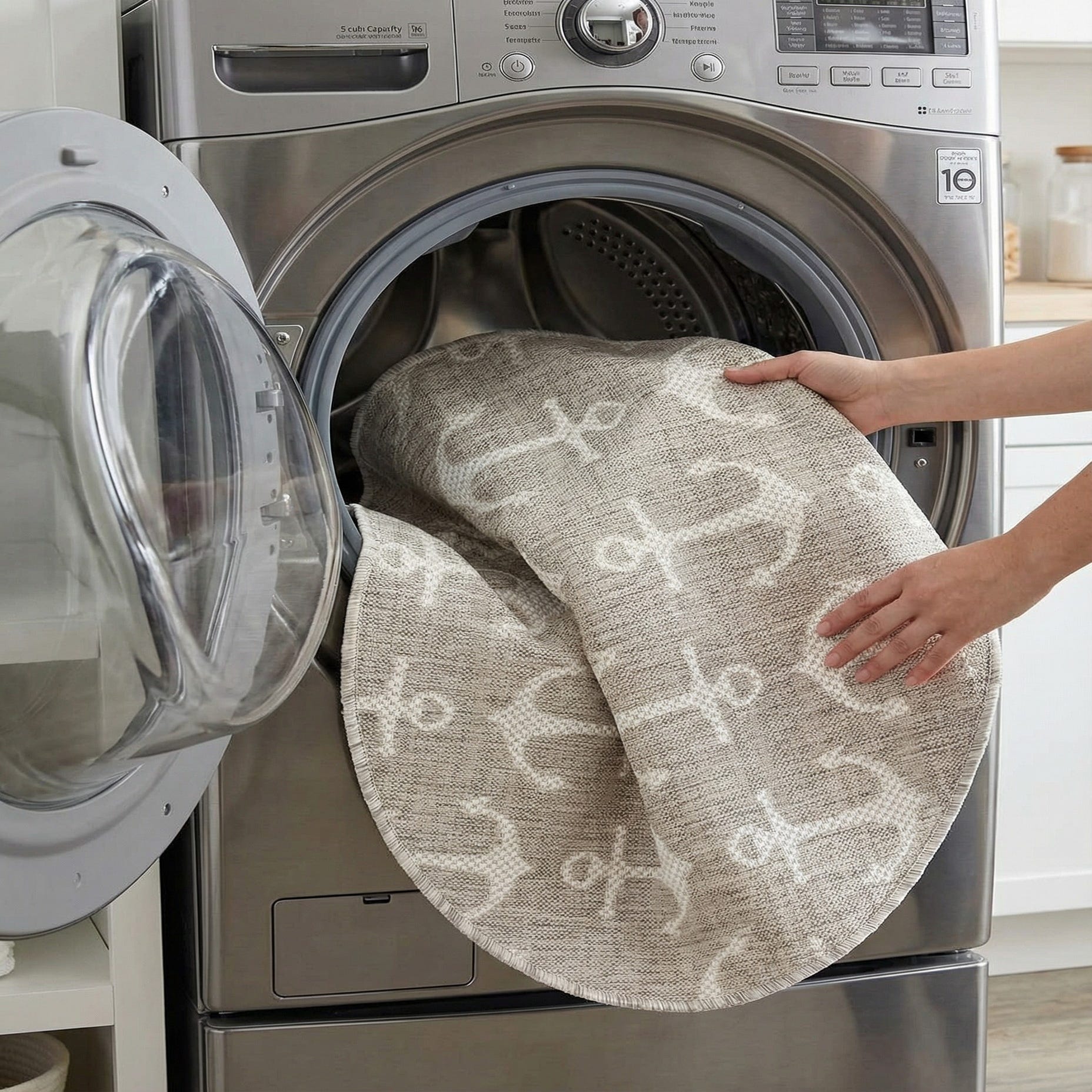3' x 3' Washable Coastal Indoor / Outdoor Round Rug