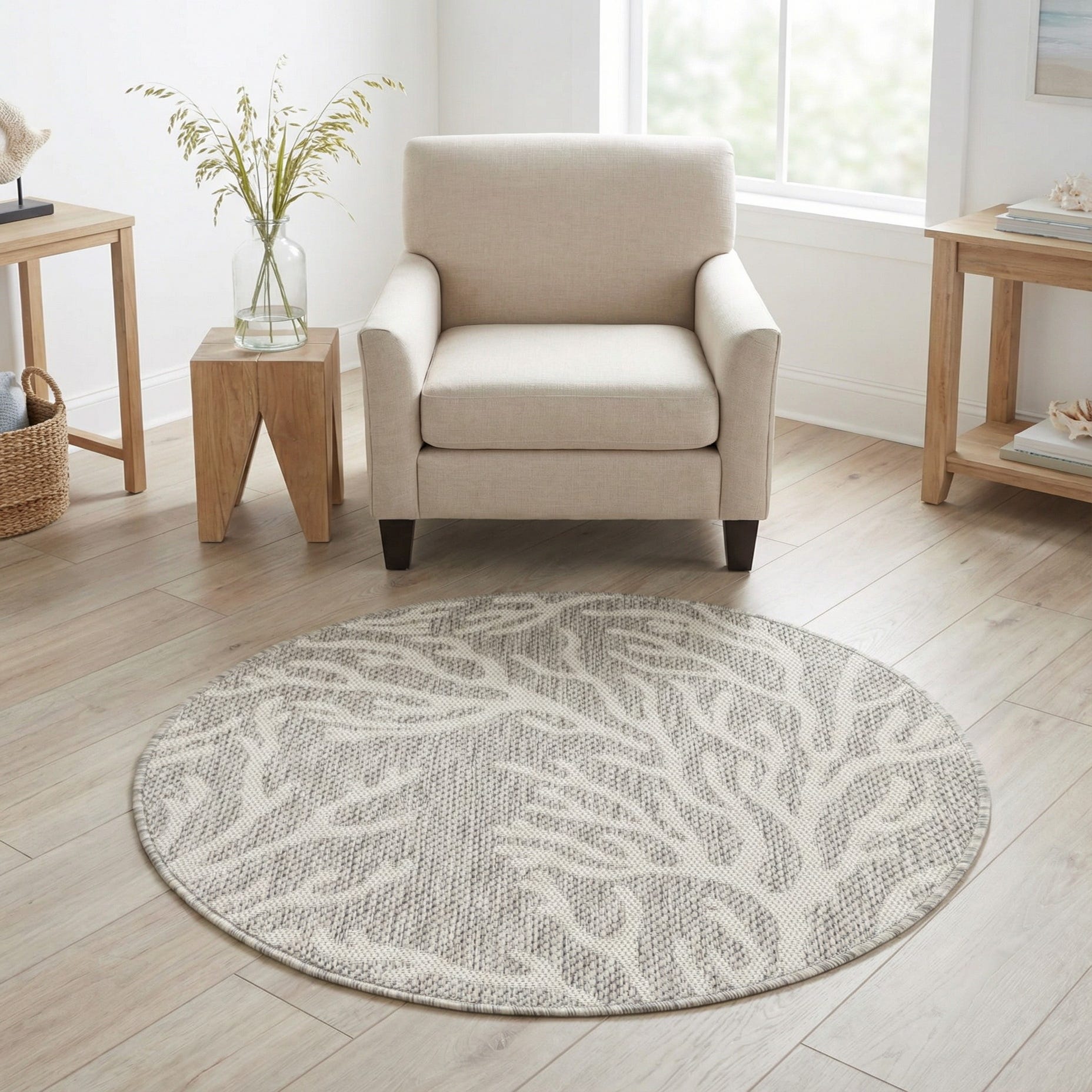 3' x 3' Washable Coastal Indoor / Outdoor Round Rug