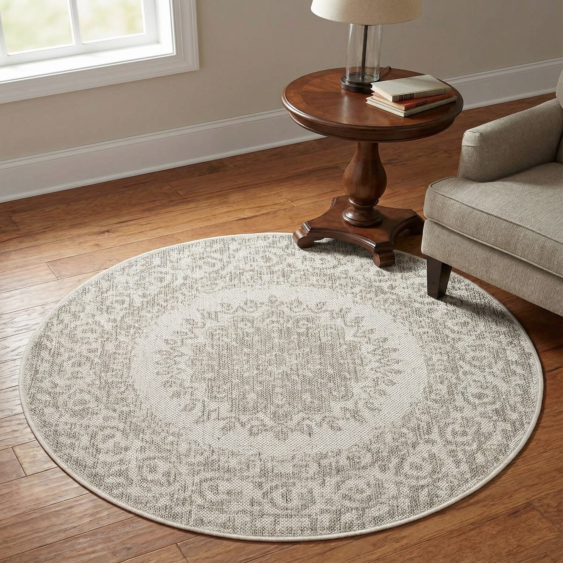 3' x 3' Washable Traditional Indoor / Outdoor Round Rug