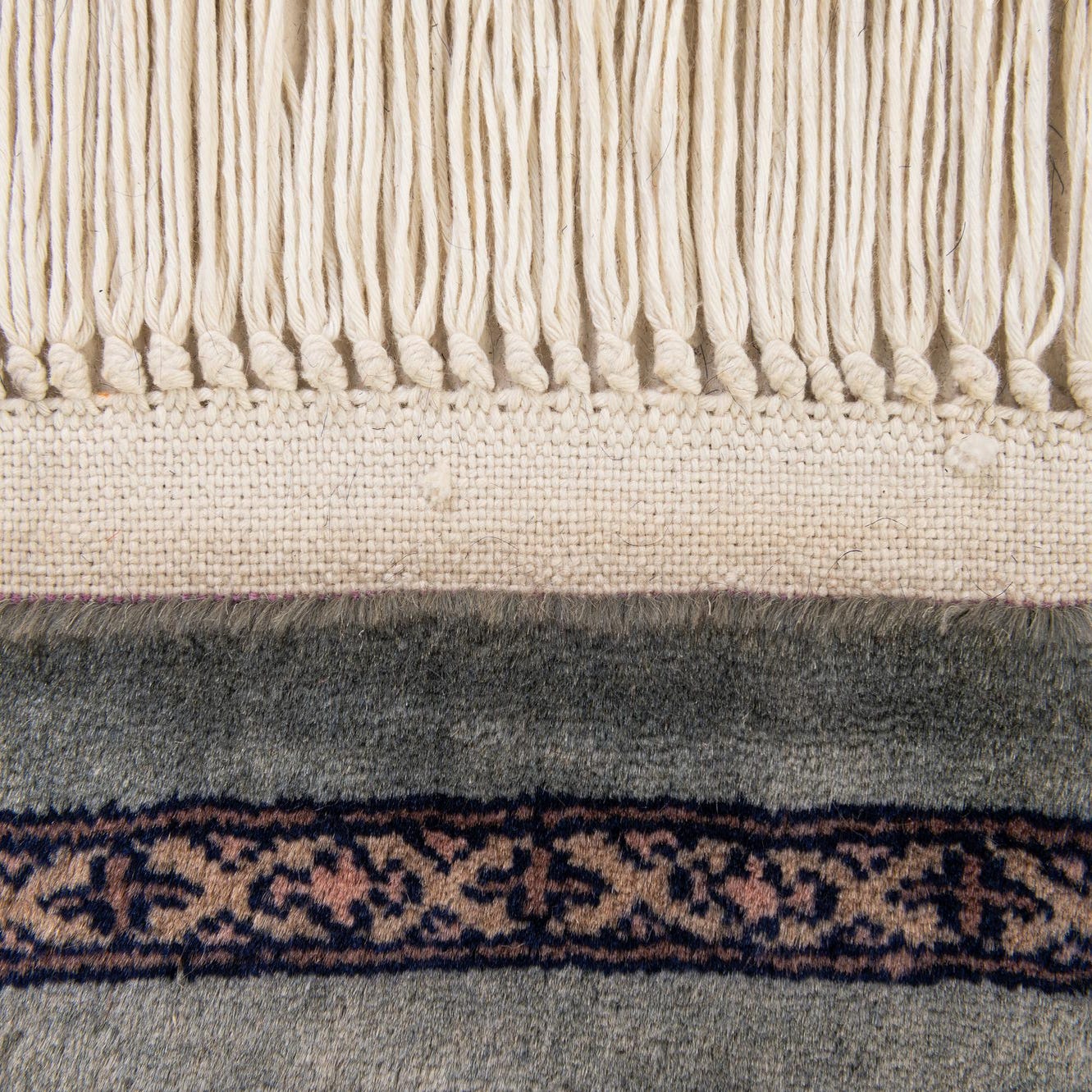 A 3x4 rectangular gray tribal wool rug with a traditional Oriental pattern and fringe.