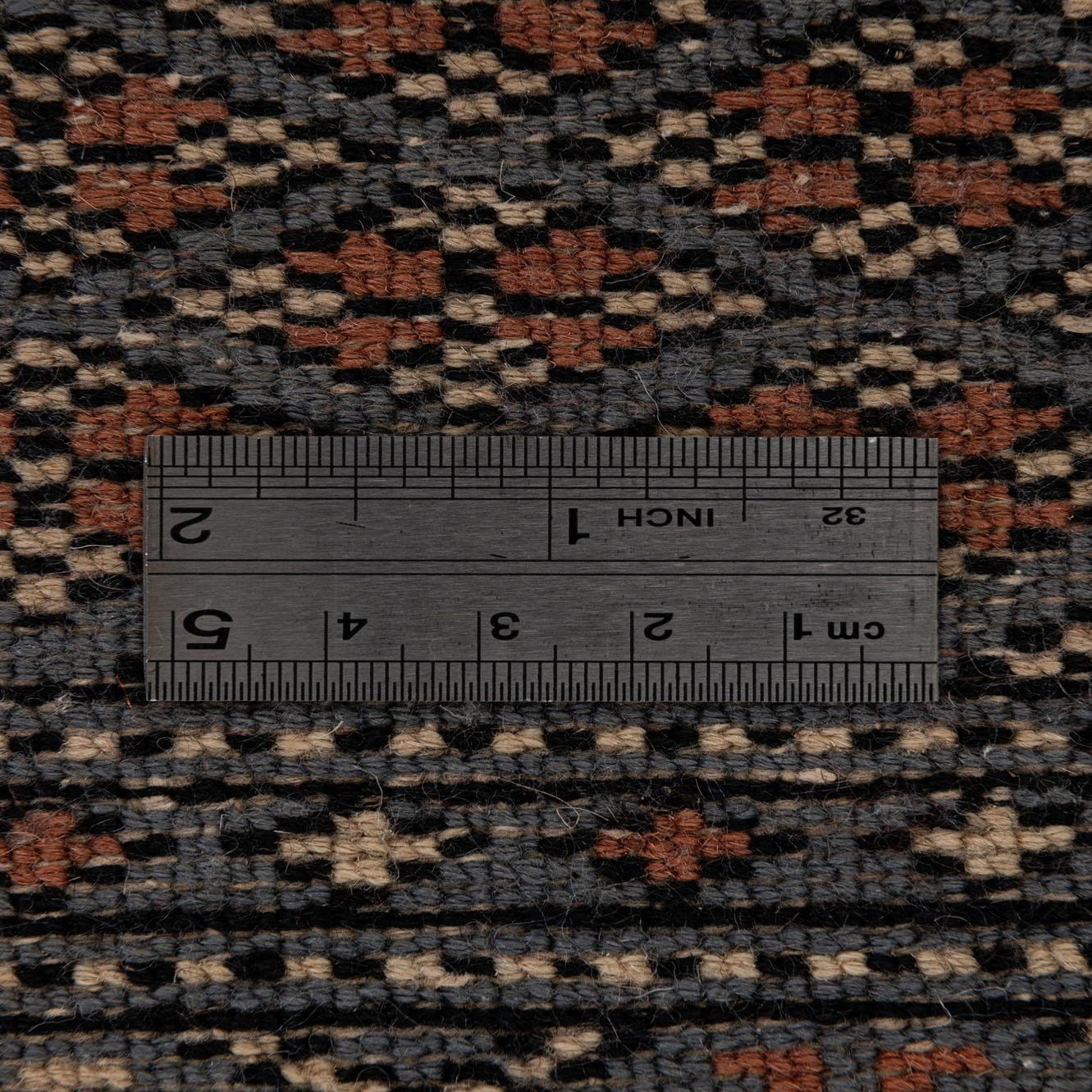 Primary color is Gray. Colors in this rug include: Gray, Brown, Black, Red.