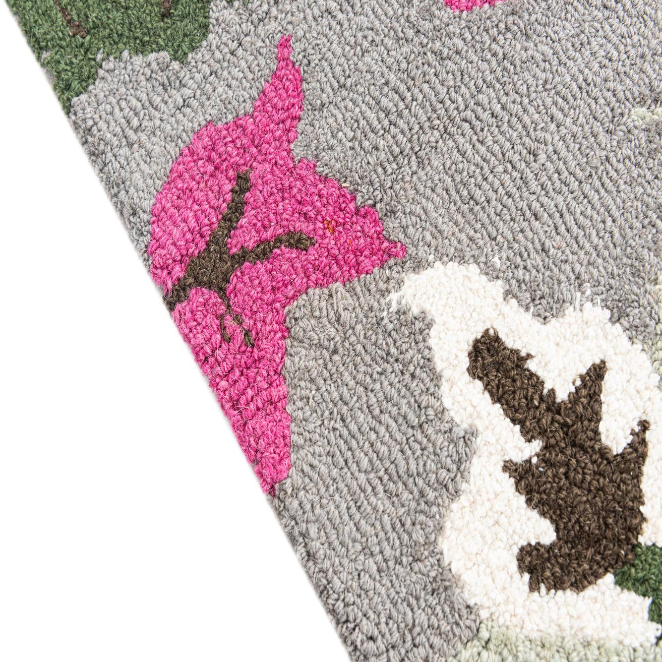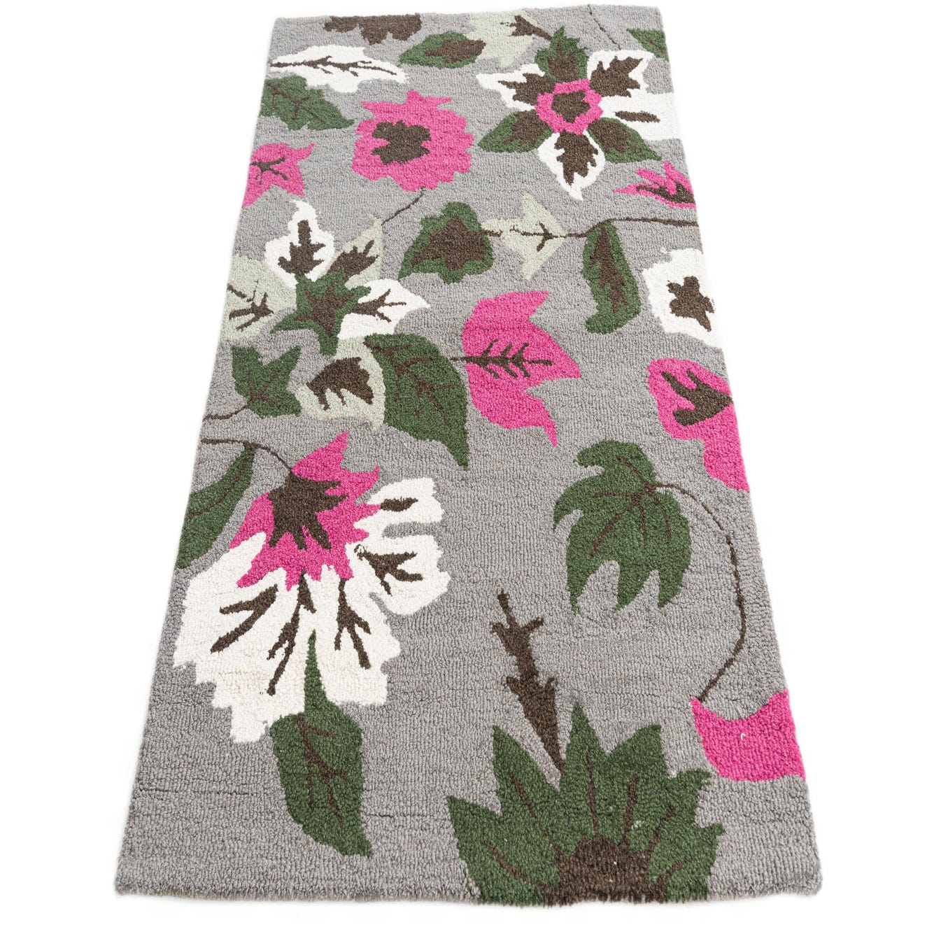 Primary color is Gray. Colors in this rug include: Gray, Green, Ivory, Pink, Olive.