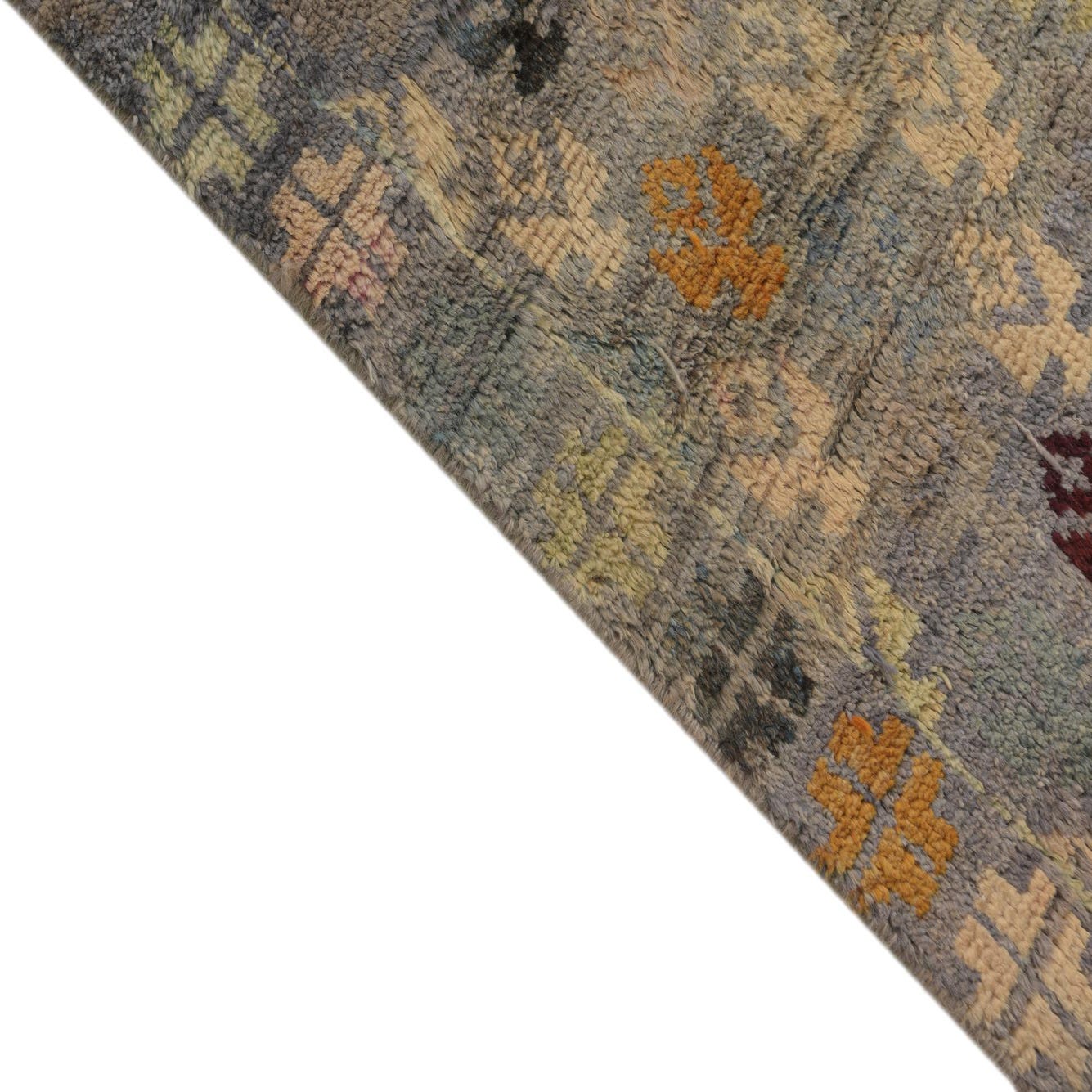 Primary color is Gray. Colors in this rug include: Gray, Brown, Burgundy, Ivory, Tan, Yellow.