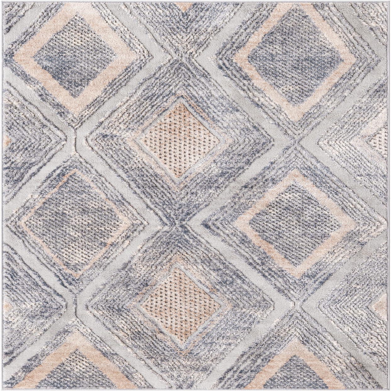 Primary color is Gray. Colors in this rug include: Gray, Cream, Beige, Silver.