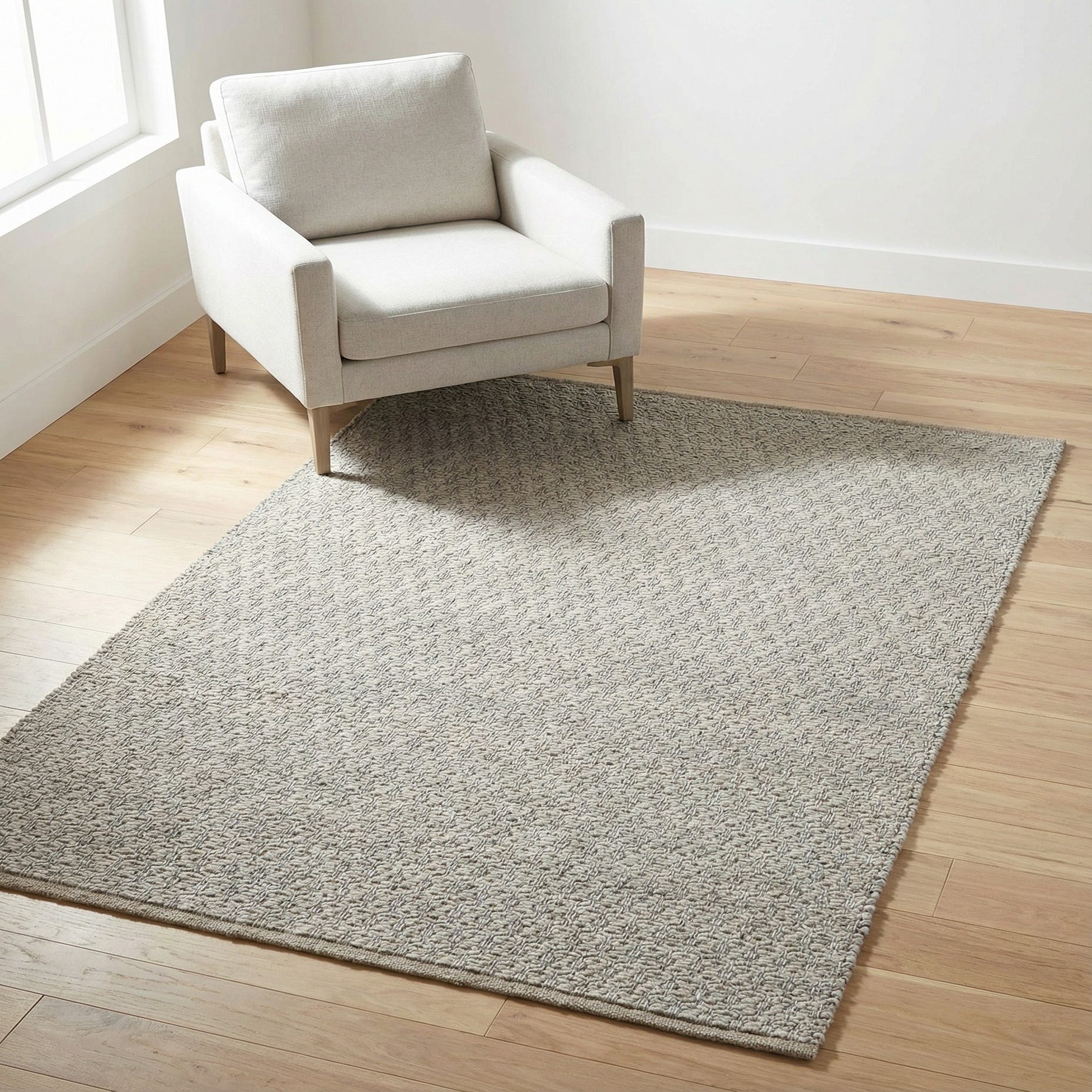 A 3x5 rectangular gray wool and cotton area rug with a modern textured flatweave pattern, ideal for an entryway.