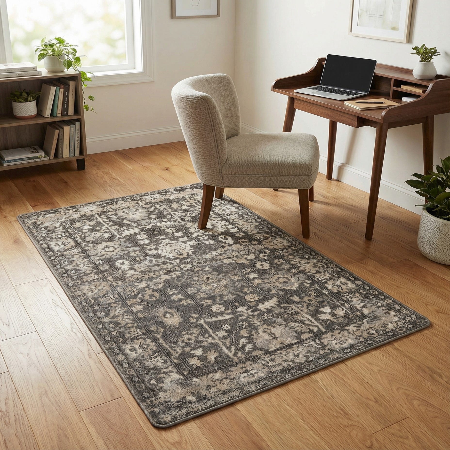 Primary color is Gray. Colors in this rug include: Gray, Beige, Ivory.