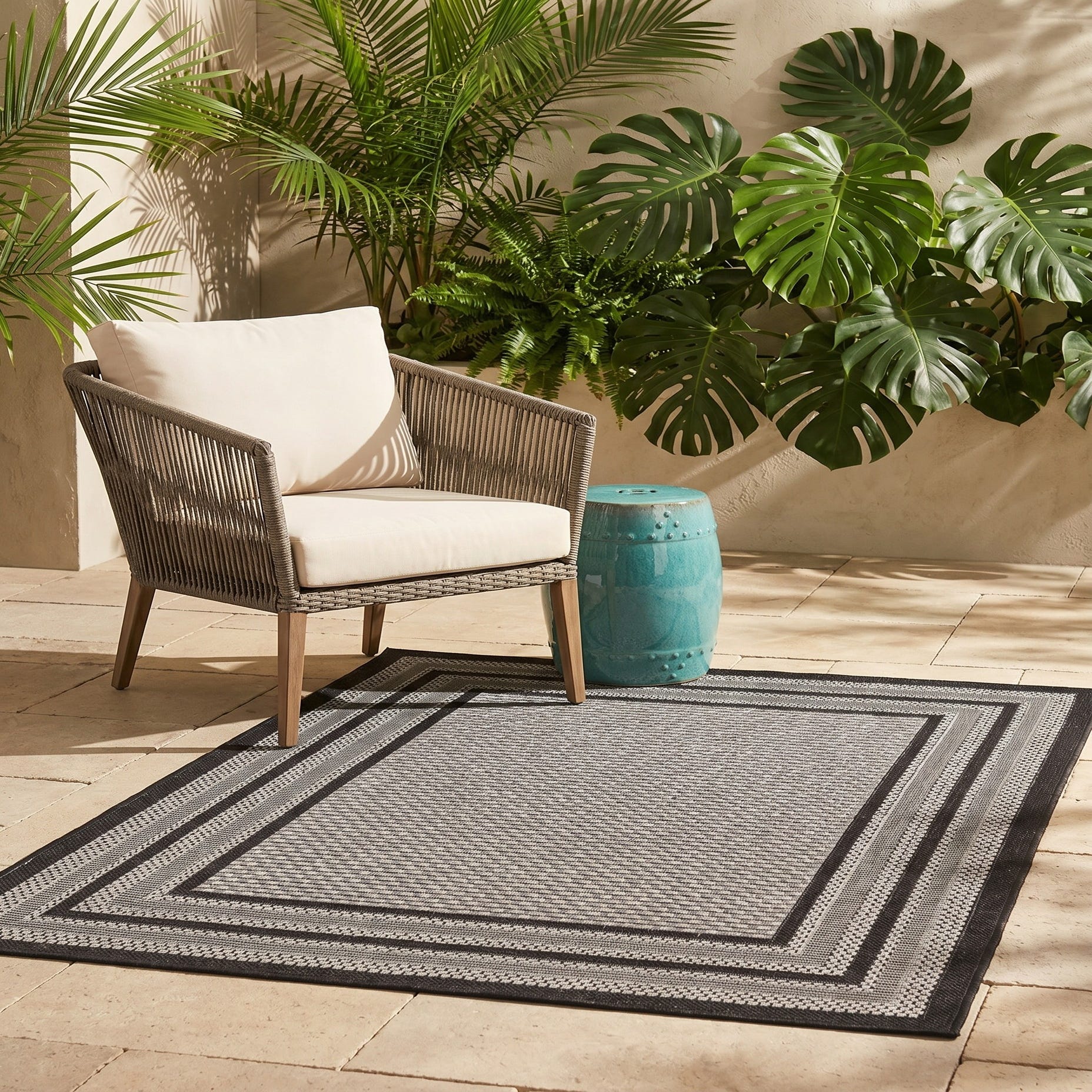 3' 3 x 5' Easy-Clean Border Indoor / Outdoor Rug