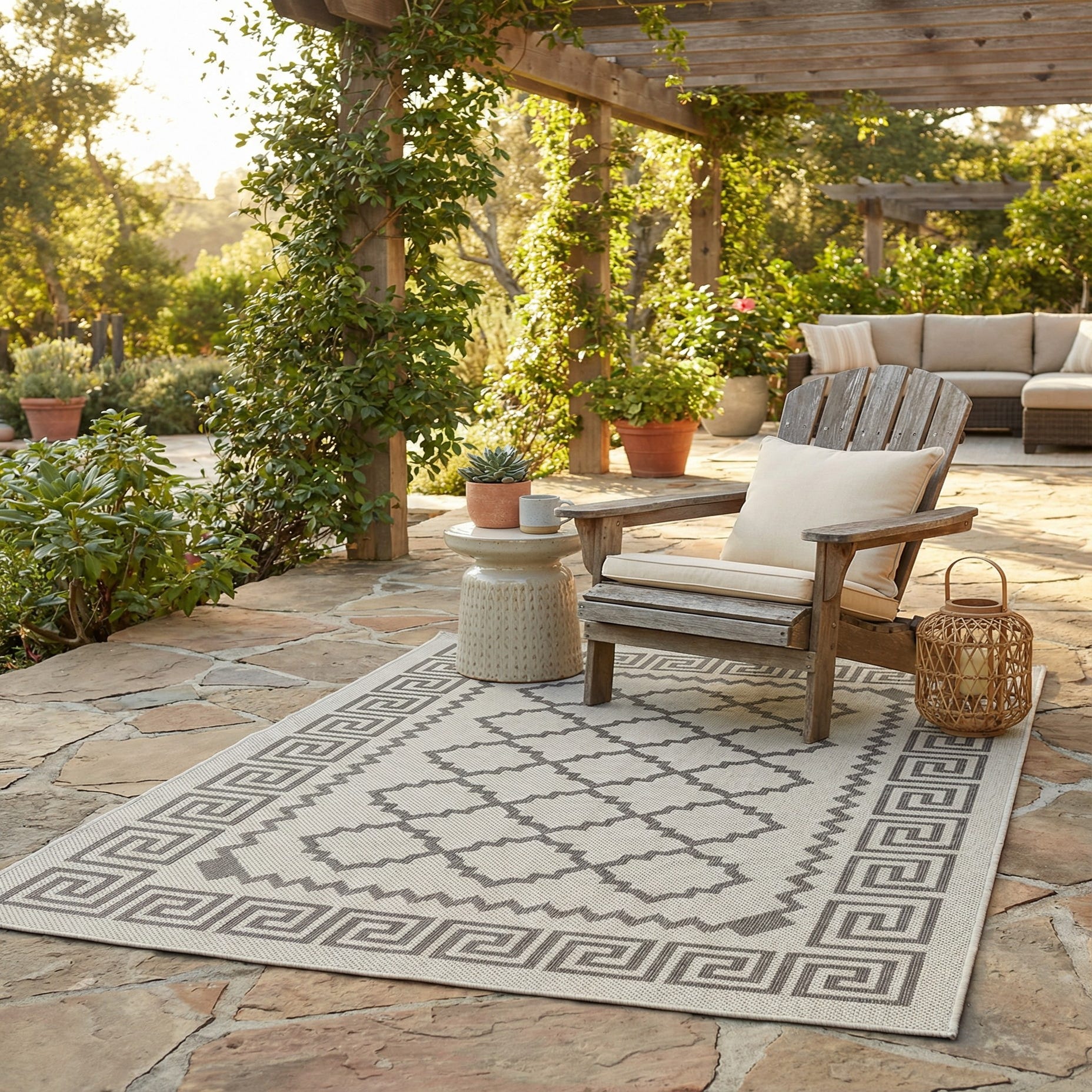 This rug works well on a covered patio, screened porch, or balcony as an anchor for a small seating group, and it’s equally at home in an entryway, kitchen, or mudroom where a durable, graphic piece is needed. Pair it with charcoal or white furnishings and natural wicker or metal accents for a modern coastal or transitional look, or use it to add structure to a minimalist or Mediterranean?inspired scheme.