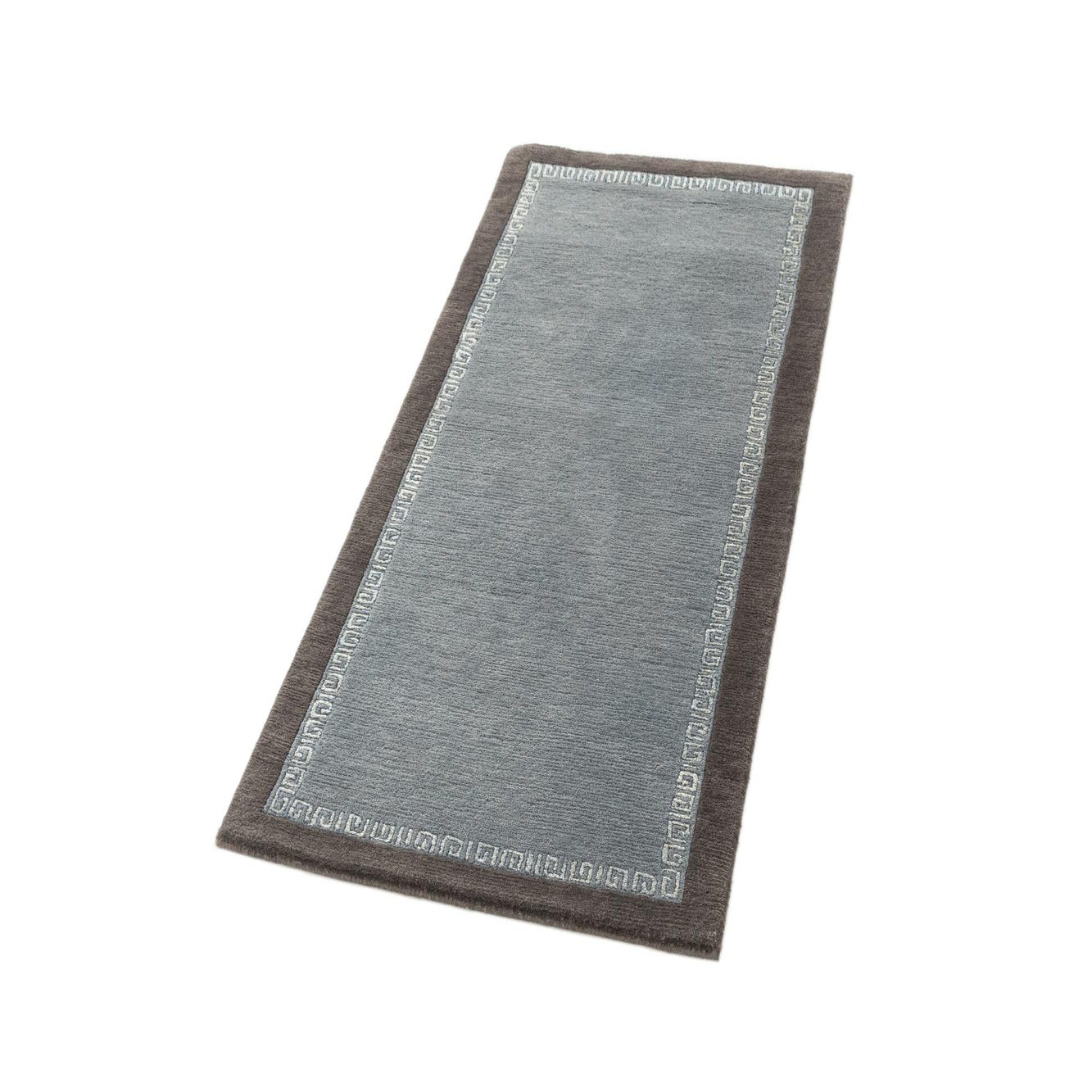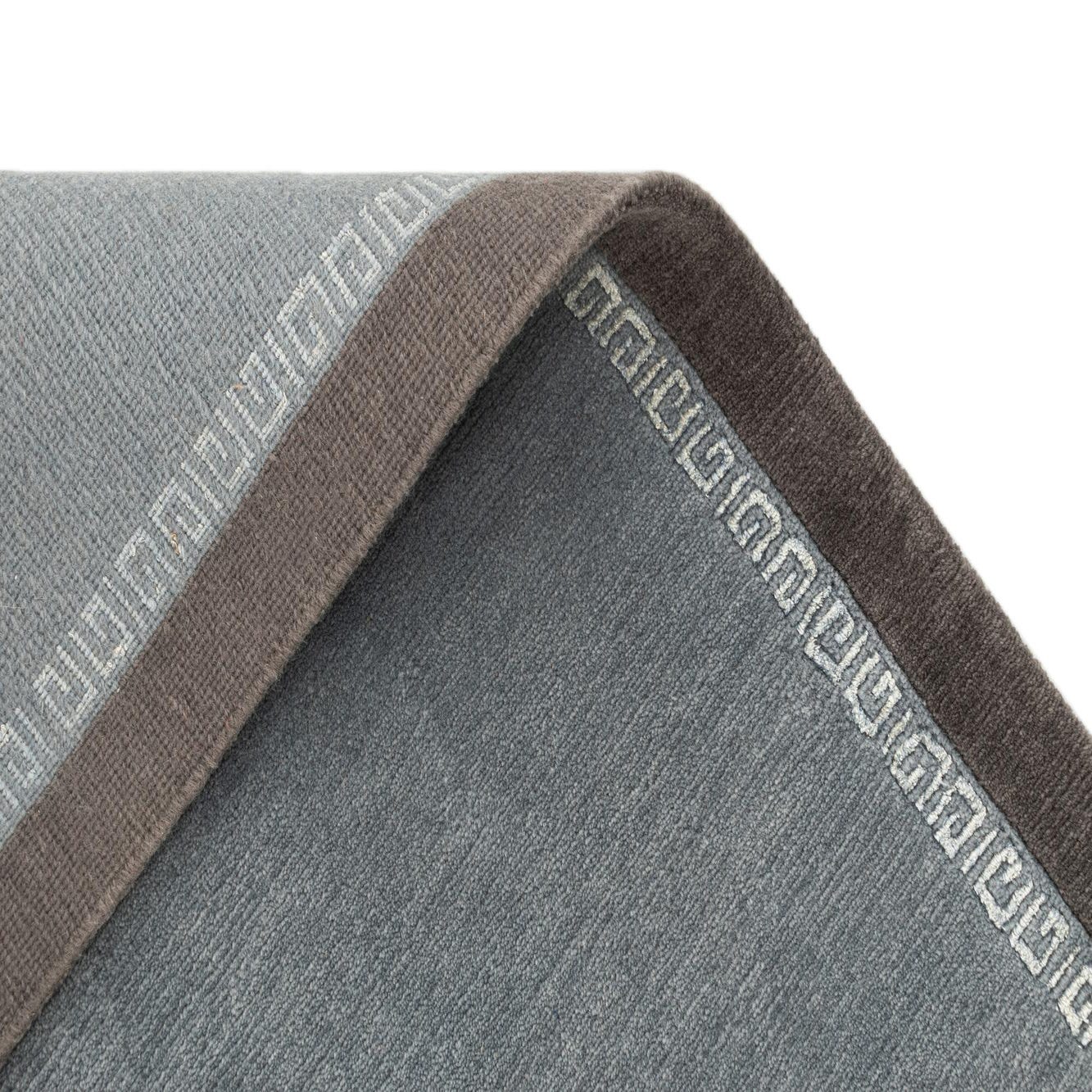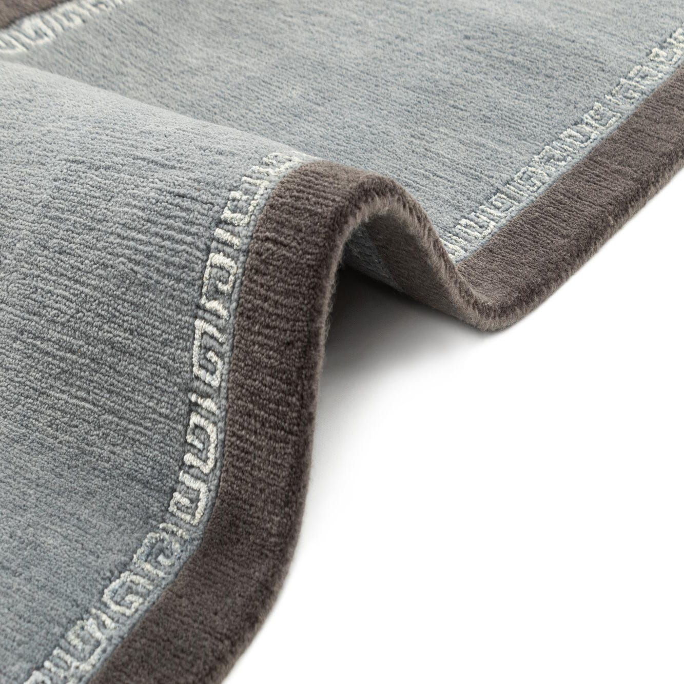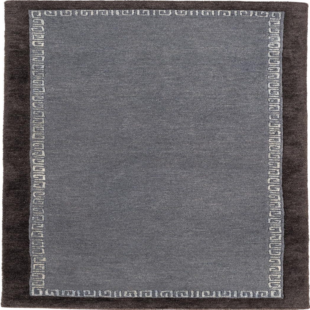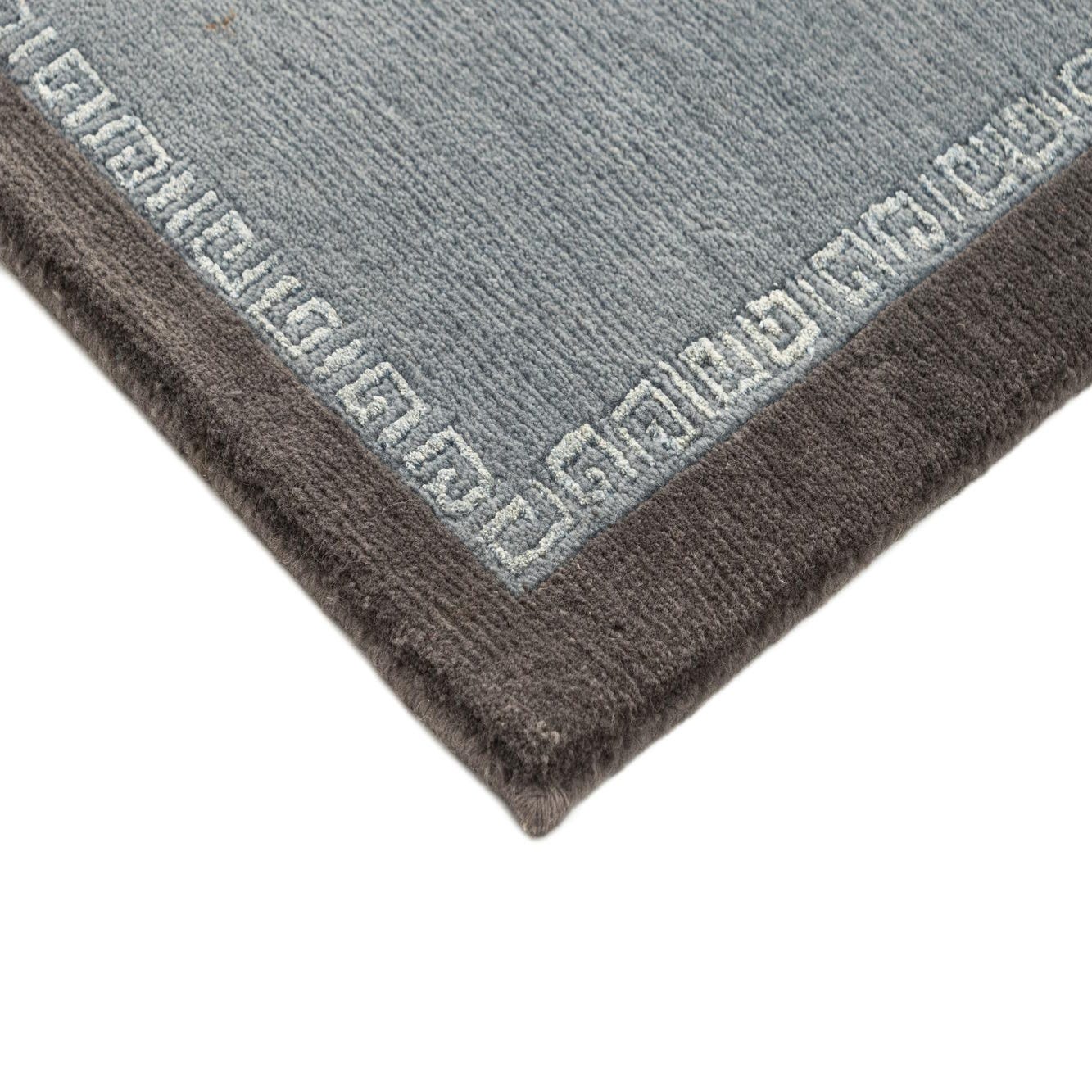 A 3x5 rectangular gray area rug with a dark gray border and a light gray Greek key pattern.