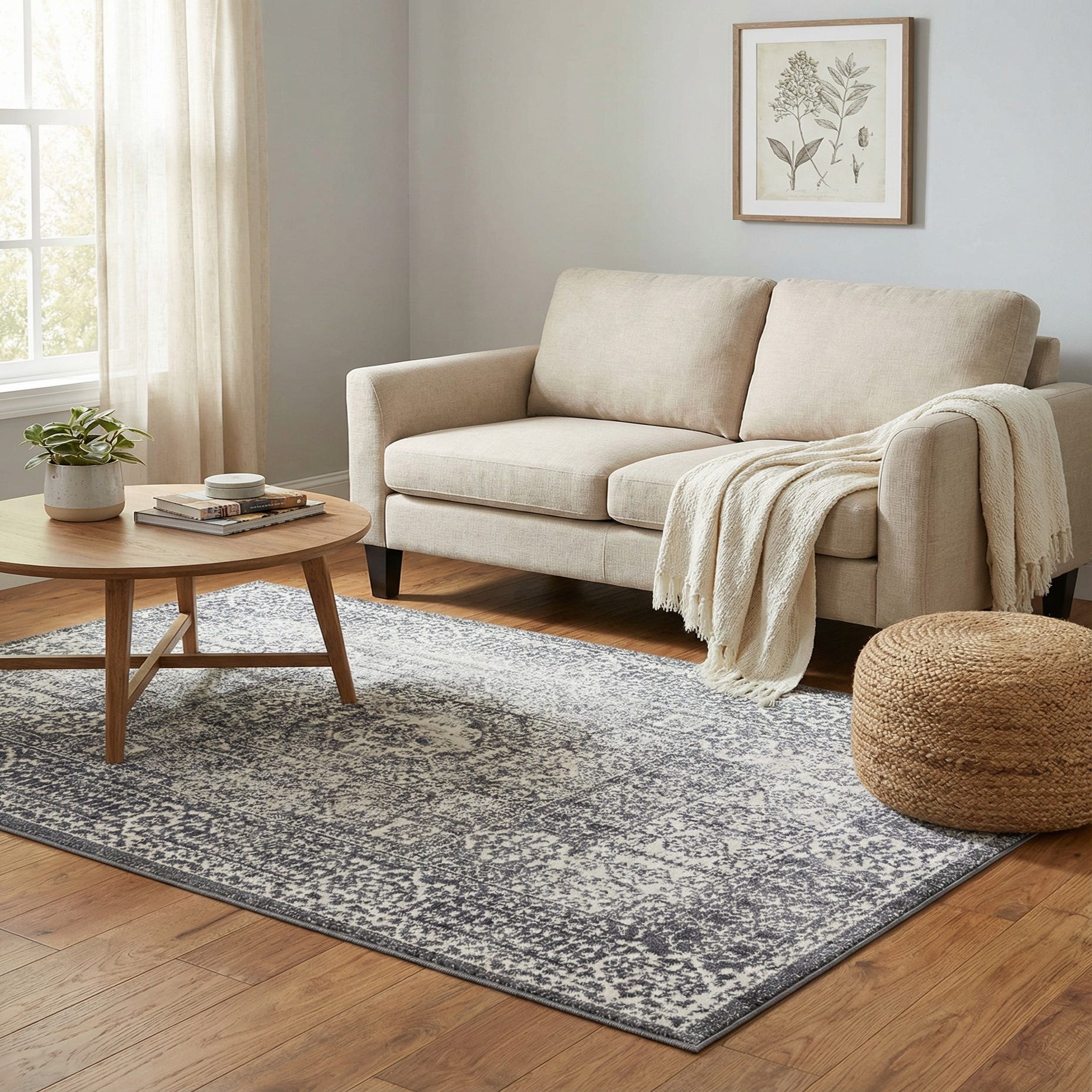 This rug works well where you want a calm, neutral anchor: place it in a small seating area, at the foot of a bed, or under a compact coffee table to add pattern without overwhelming the room. It pairs naturally with modern farmhouse, transitional, or Scandinavian interiors and complements light wood tones, soft leathers, and layered textiles for a relaxed, cohesive look.