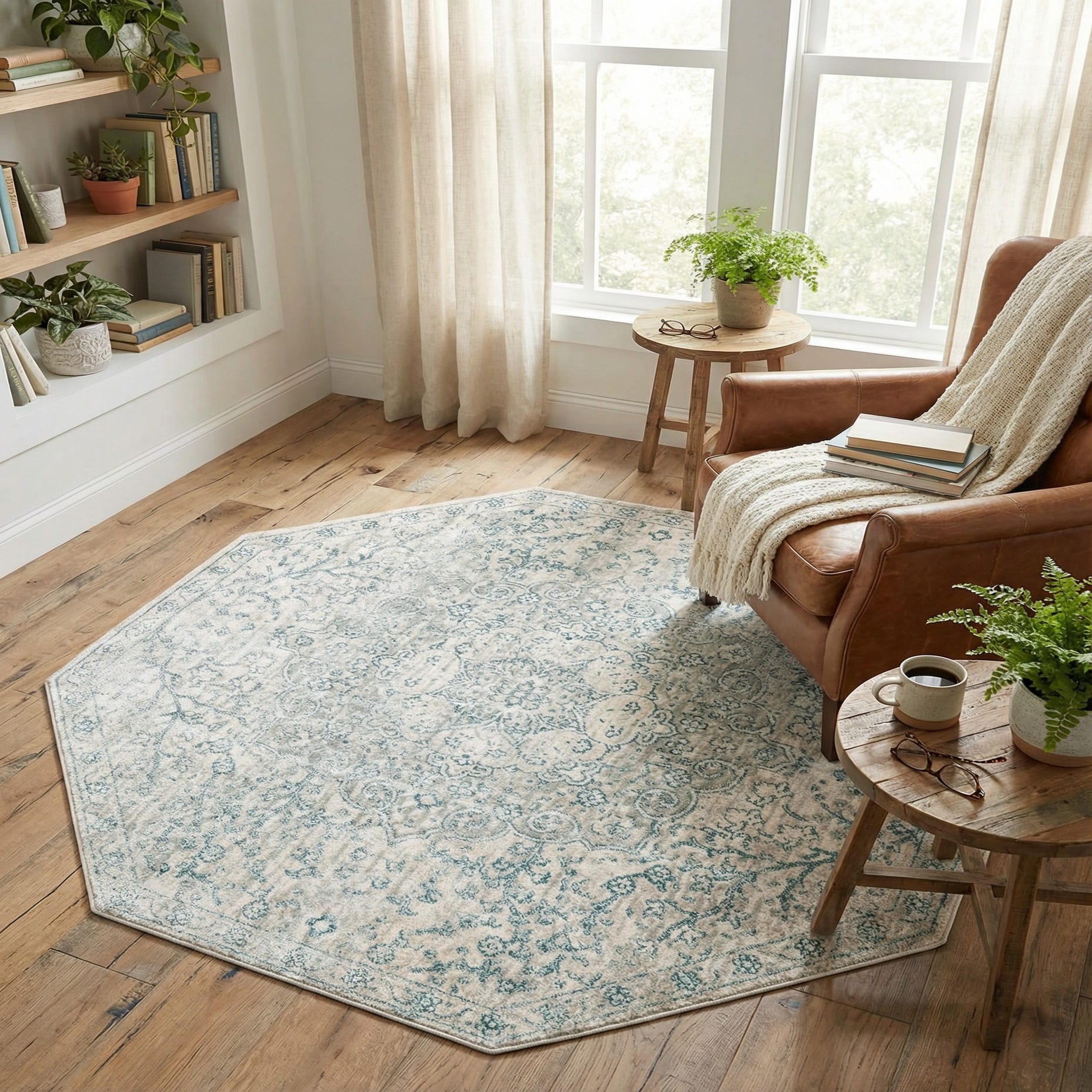 Primary color is Gray. Colors in this rug include: Gray, Blue, Ivory.