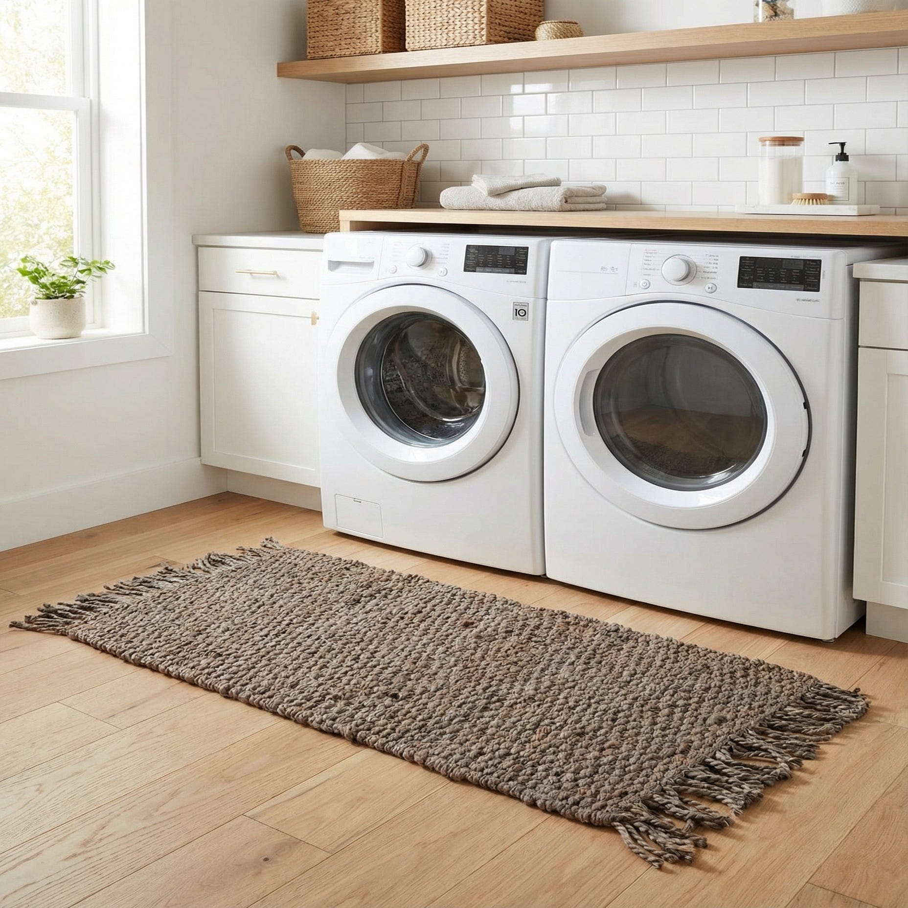Designed to work with a range of interiors, this runner suits hallways and entryways as well as layered placements in kitchens or alongside a sofa. Pair it with warm wood furniture and linen upholstery for a relaxed farmhouse look, use crisp white walls and clean-lined furnishings for Scandinavian-inspired rooms, or combine it with mixed textures and greenery for a laid-back boho feel.