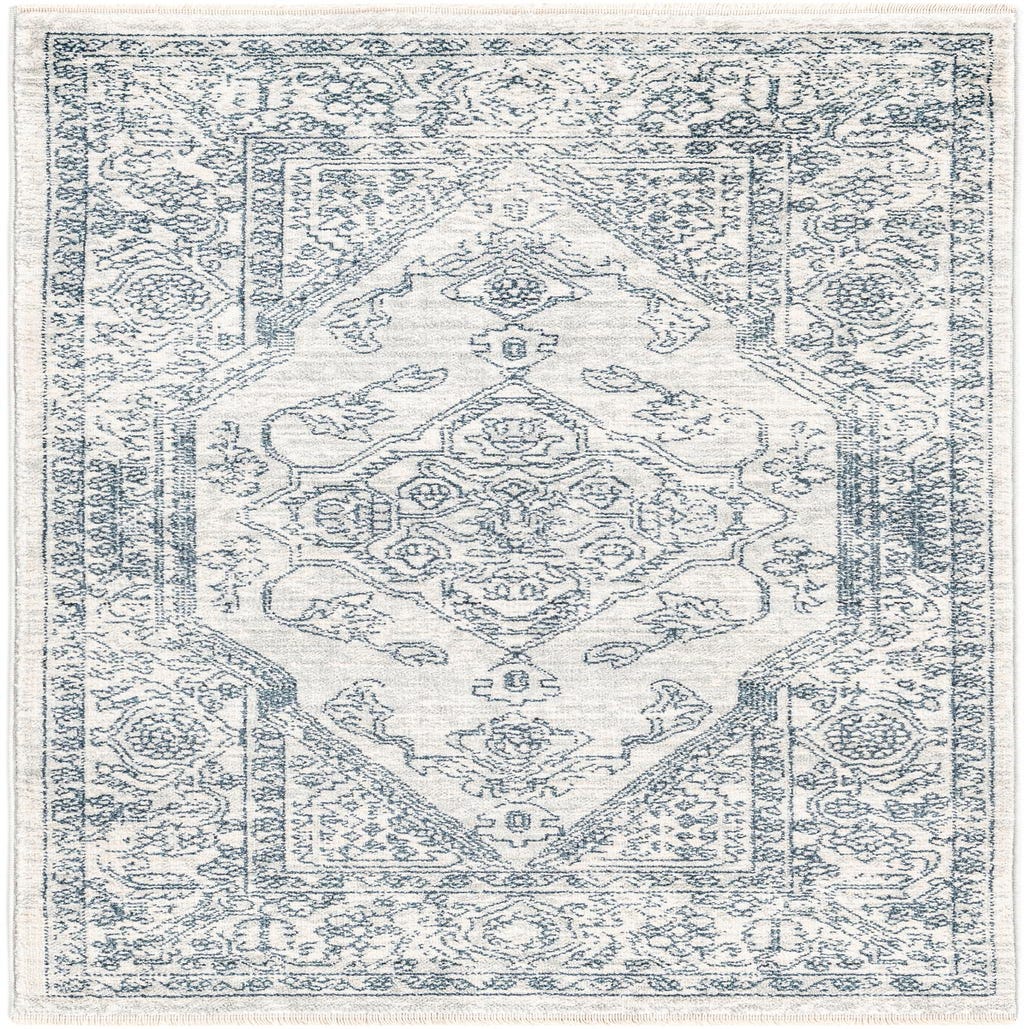 Primary color is Gray. Colors in this rug include: Gray, Ivory.