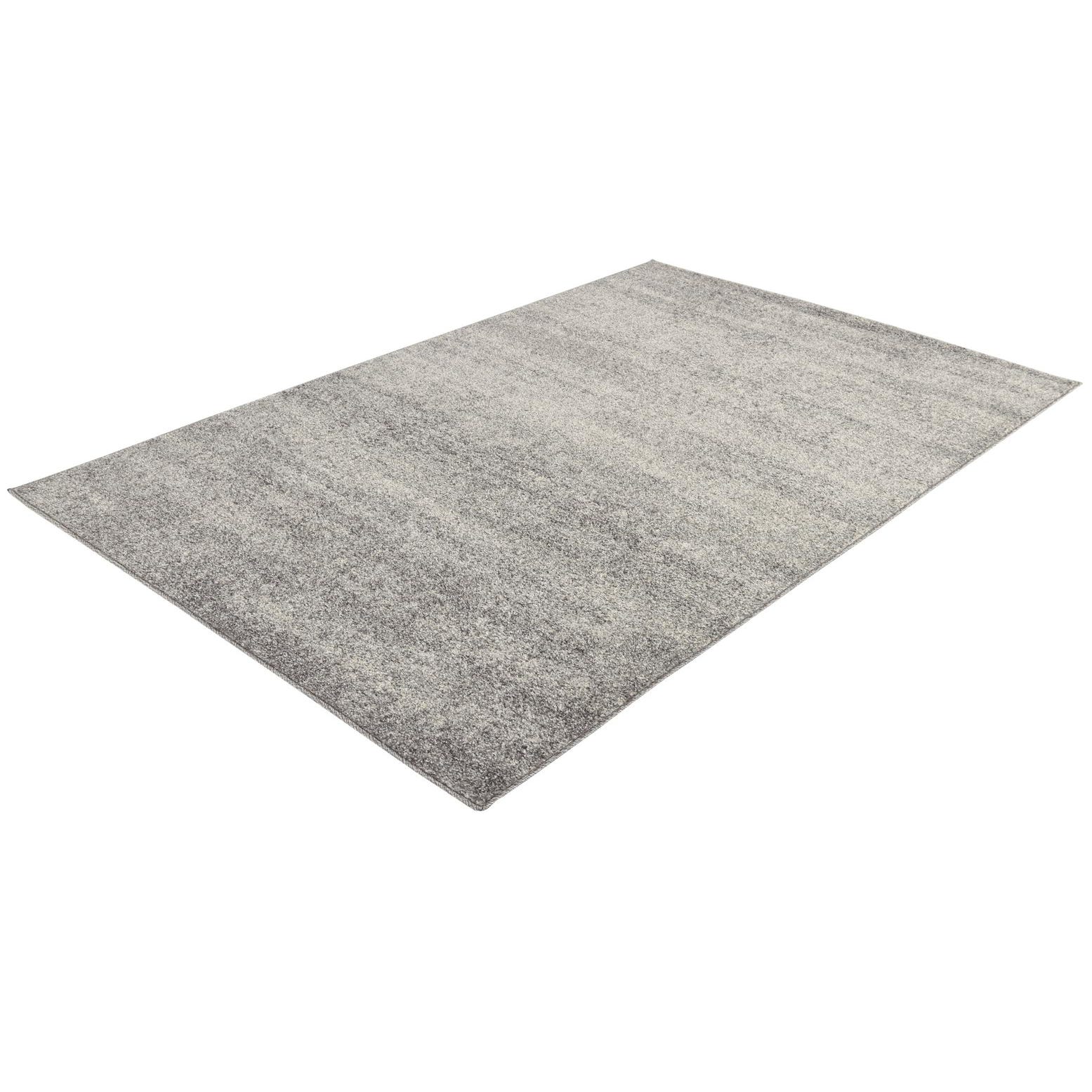 The Angelica collection rug offers a harmonious blend of contemporary design and relaxed comfort to any interior space. This 4x6 area rug is machine-woven of 100% polypropylene, promising durability and easy maintenance. The rug features a gradient pattern with a spectrum of grey hues that transition from light to dark, creating a sense of depth and sophistication. The surface exhibits a soft texture, coupled with a stain-resistant finish that contributes to its practical appeal.