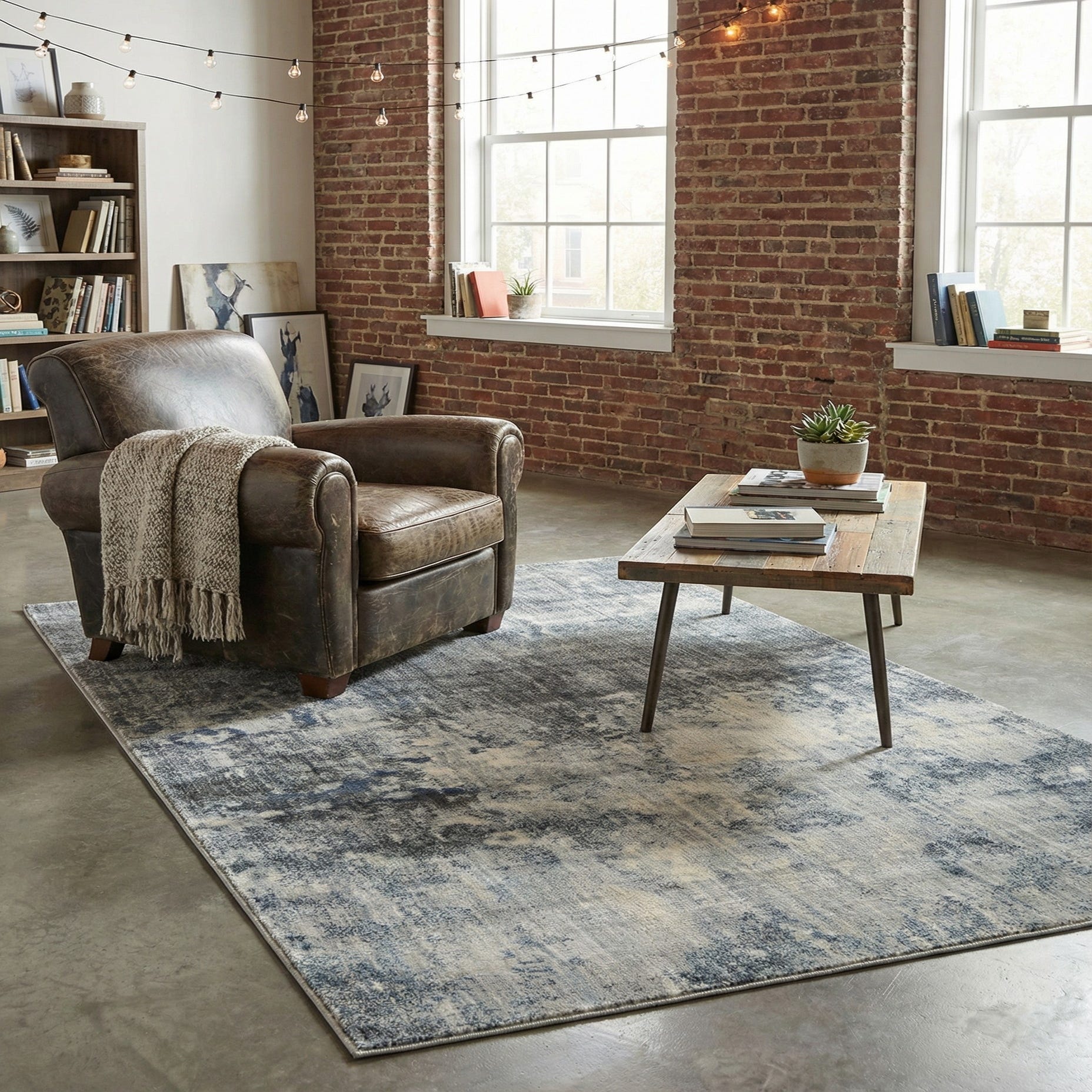 The neutral-gray ground with blue and ivory accents makes this rug versatile across several styles—contemporary, transitional, coastal, or Scandinavian-inspired interiors. It works well layered beneath a sofa and coffee table to anchor a living area, placed under a bed to soften the bedroom, or used in an entry or home office where you want pattern without visual clutter. Pair it with light- or mid-tone woods, textured linens, and muted metallics to emphasize the rug’s calm, collected palette.