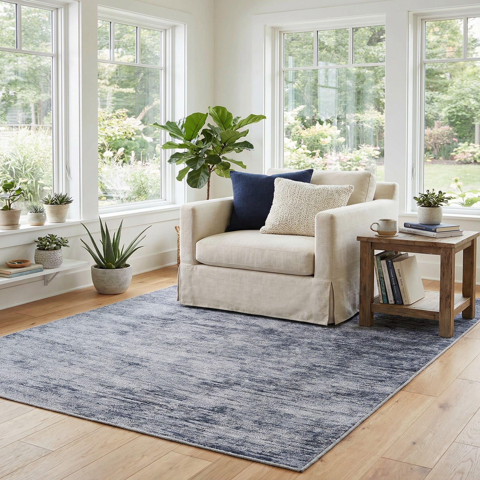 Being pet-friendly and shed-free, this rug prioritizes ease of living, seamlessly integrating with the lifestyles of those with pets and children. Suitable for a variety of interior design scenarios, the Asha rug would serve as a versatile addition to modern minimalist decors, serve as a calming element in eclectic surroundings, or complement the sleek lines of industrial-inspired spaces. Its size and visual appeal make it an excellent choice for defining seating areas, adding a layer of warmth to bedrooms, or enhancing the elegance in home offices.