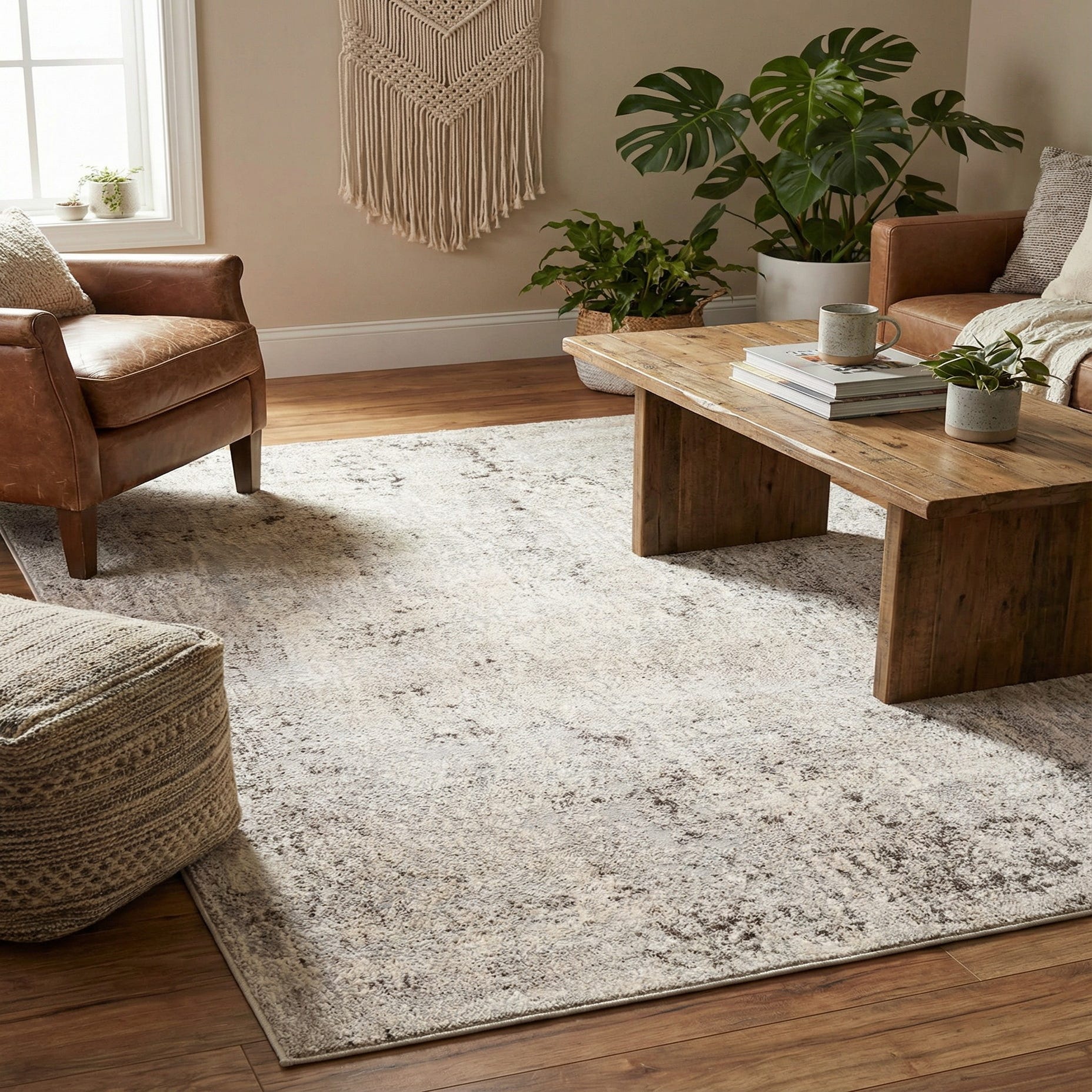 This rug works well under a coffee table in a contemporary living room, as a textural layer at the foot of a bed, or placed in a home office to soften hard flooring. Pair it with light wood tones and ivory upholstery for a calm, airy scheme, or combine with charcoal accents and metal finishes for a more defined, modern contrast.