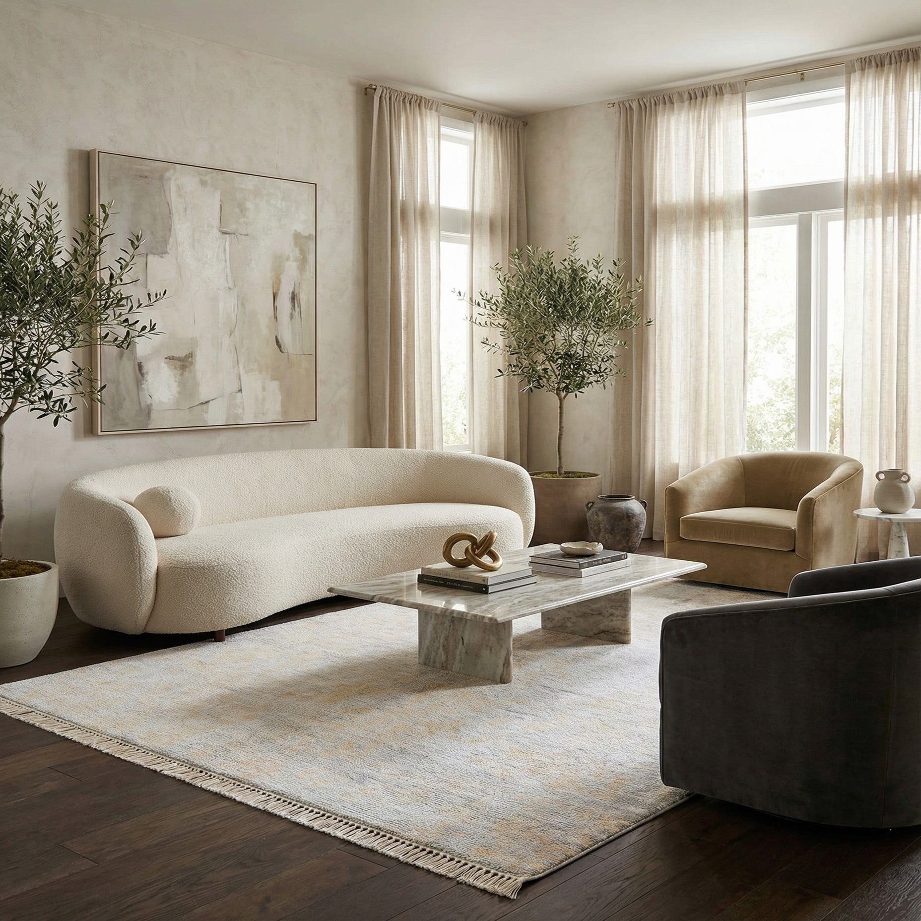 Hand made of wool and cotton, the rug combines wool’s natural resilience with a cotton foundation for a low-profile, tactile surface that feels soft underfoot. Place it to anchor a seating area, layer it at the foot of a bed, or use it in a quiet dining or entry space where subtle pattern and muted metallics will add depth. It pairs particularly well with warm wood tones, neutral upholstery, and interiors that blend modern and traditional elements—think contemporary-traditional, Scandinavian, or soft-glam styling.