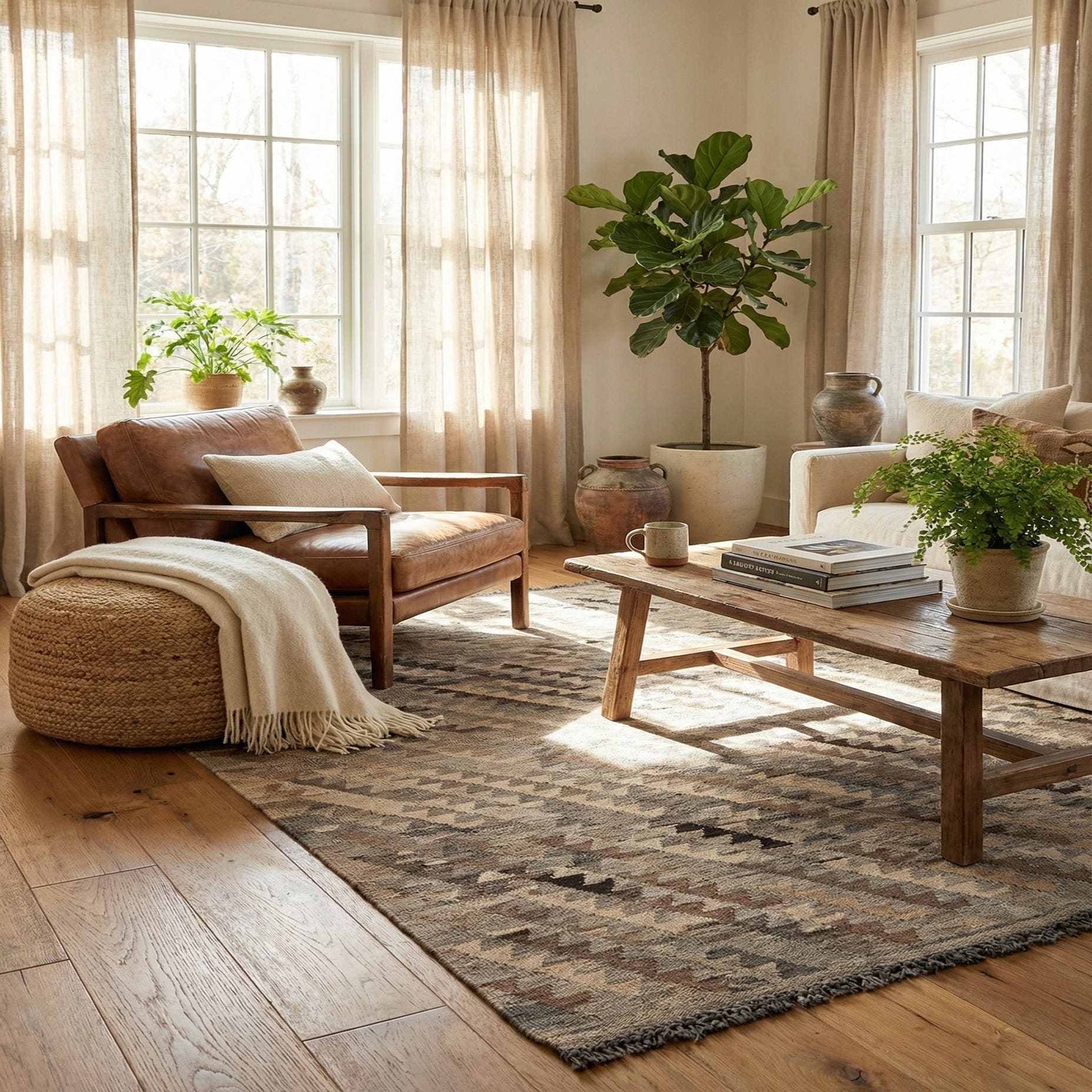 4' x 5' 10 Hand Woven Kilim Maymana Wool Rug