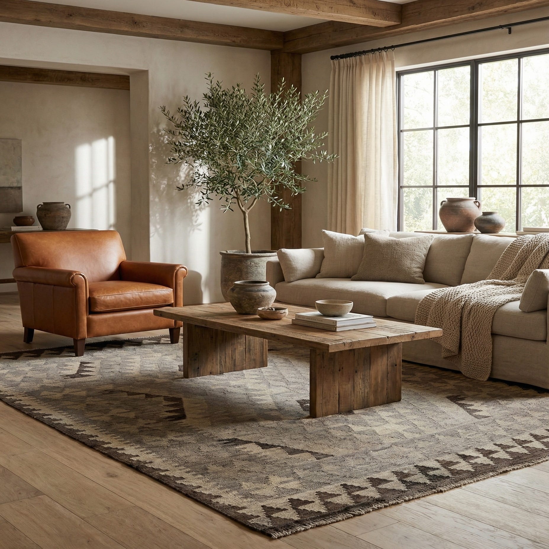 Primary color is Gray. Colors in this rug include: Gray, Beige, Brown.