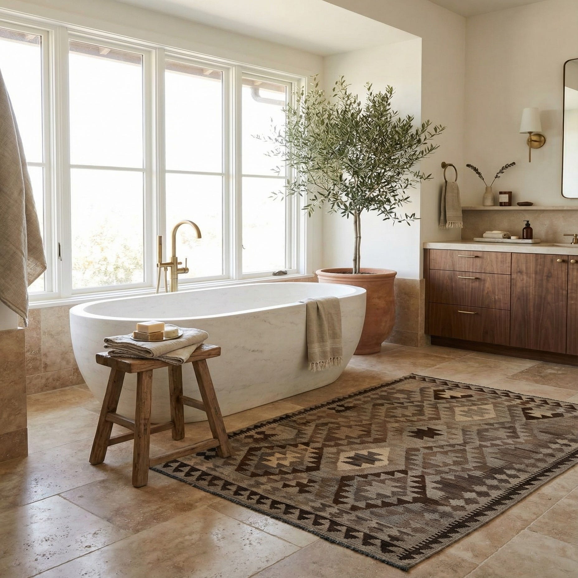 4' 1 x 6' 2 Hand Woven Kilim Maymana Wool Rug