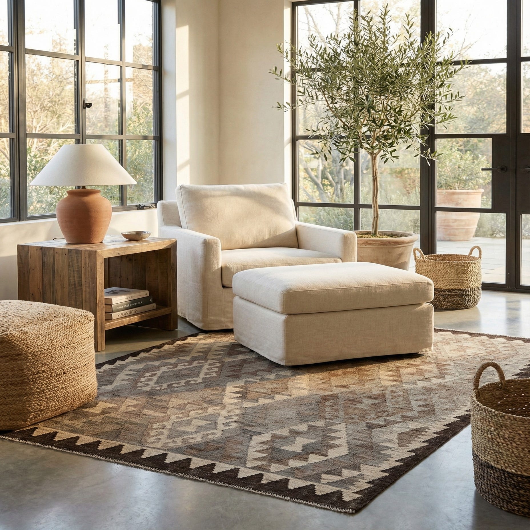 4' 5 x 6' 1 Hand Woven Kilim Maymana Wool Rug