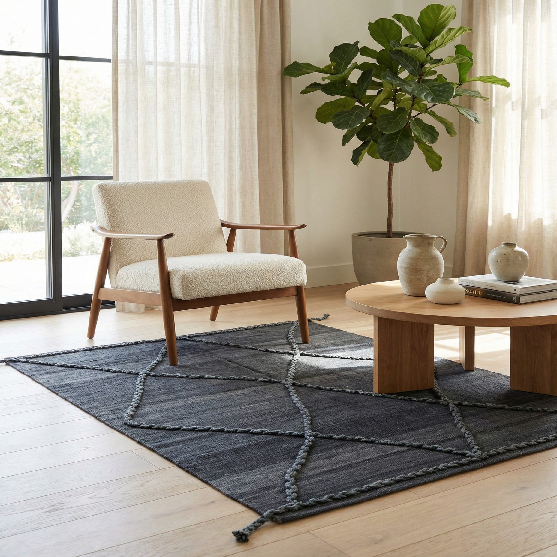Ideal for modern, minimalist, or Scandinavian-inspired interiors, this rug's neutral palette and clean lines make it versatile enough to anchor a living room, home office, or cozy reading nook. Its handwoven construction ensures each piece is unique, adding character and bespoke charm to your space. Whether layered over hardwood floors or acting as a centerpiece in a monochromatic setting, this rug is a tasteful addition to any room seeking a touch of modern artisan craftsmanship.