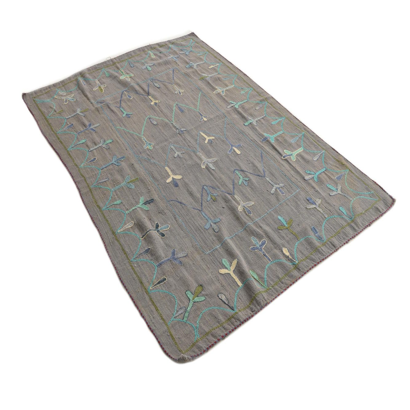 4' 7 x 6' 9 Hand Woven Kilim Suzani Wool Rug