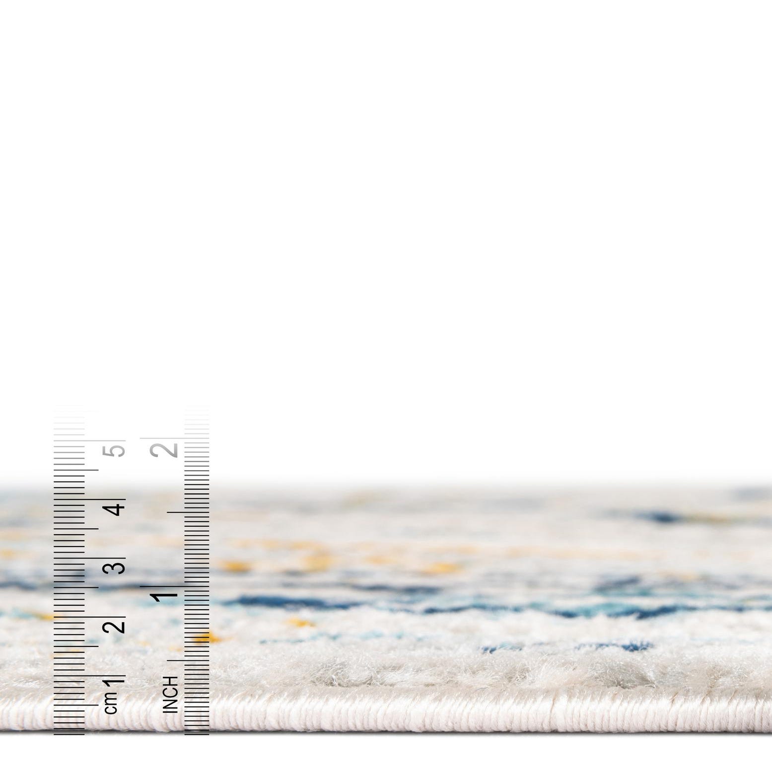 Primary color is Gray. Colors in this rug include: Gray, Ivory, Navy Blue, Yellow, Light Blue.
