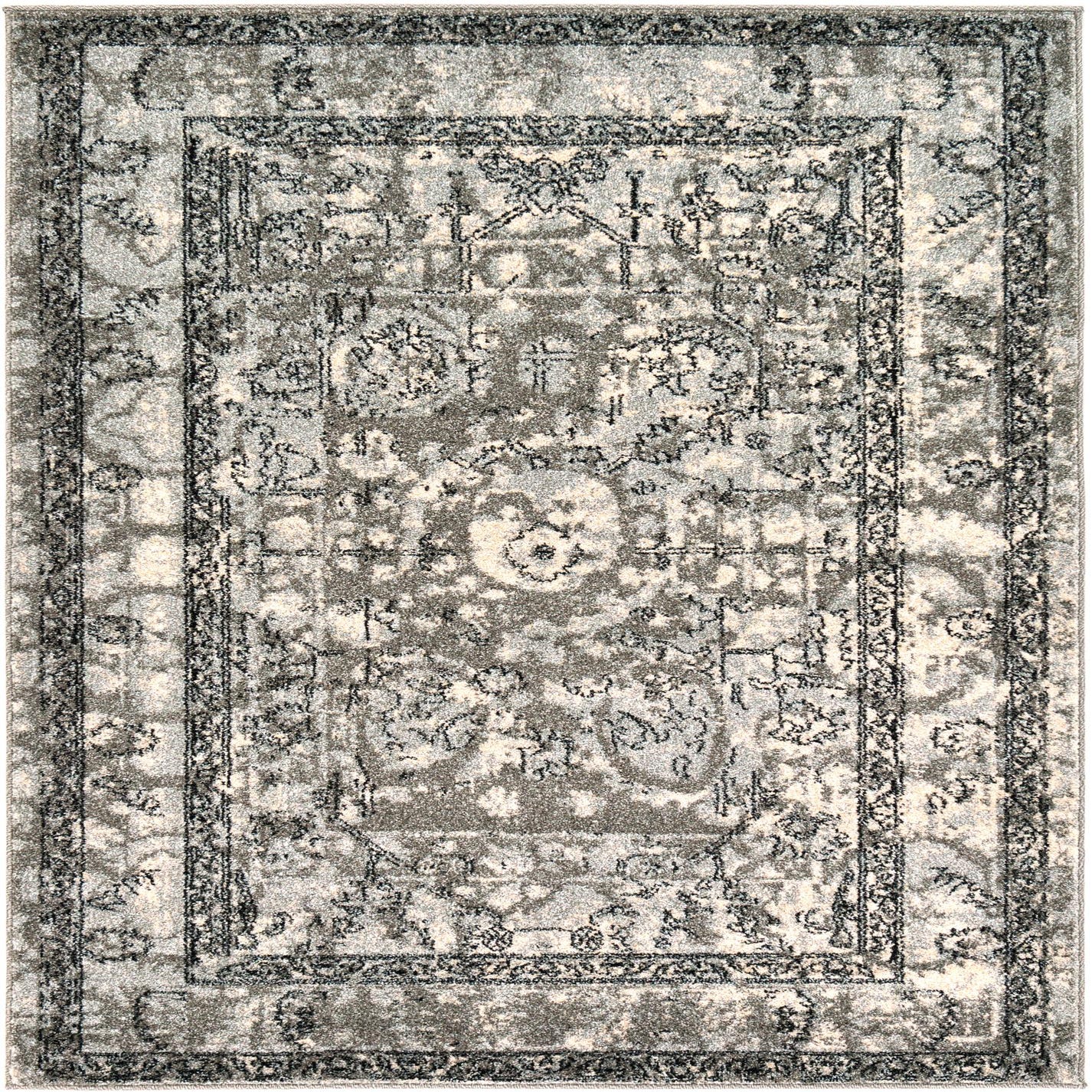 Primary color is Gray. Colors in this rug include: Gray, Silver, Beige.
