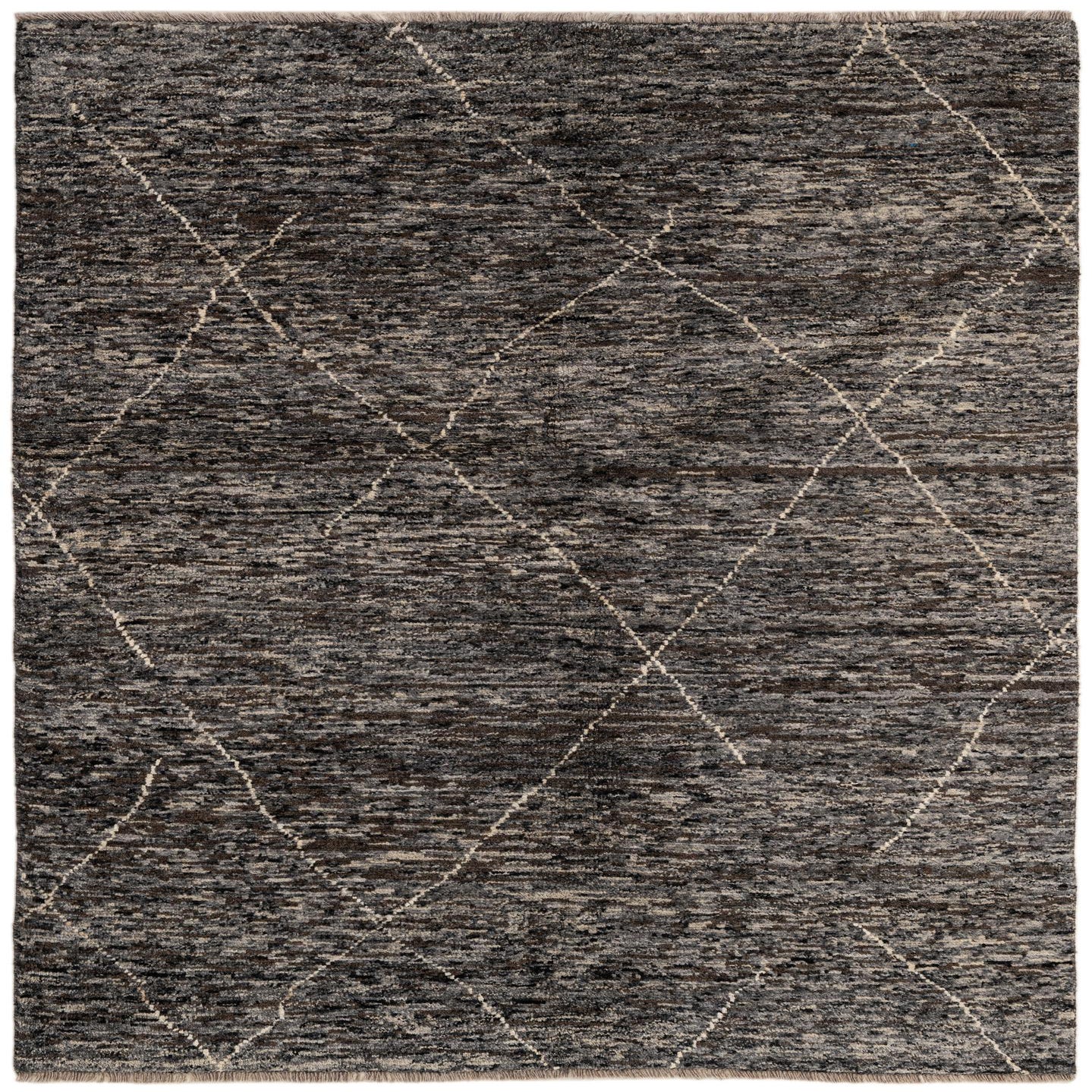 A 4x6 rectangular gray wool rug with a subtle tribal diamond pattern, ideal for a living room or bedroom.