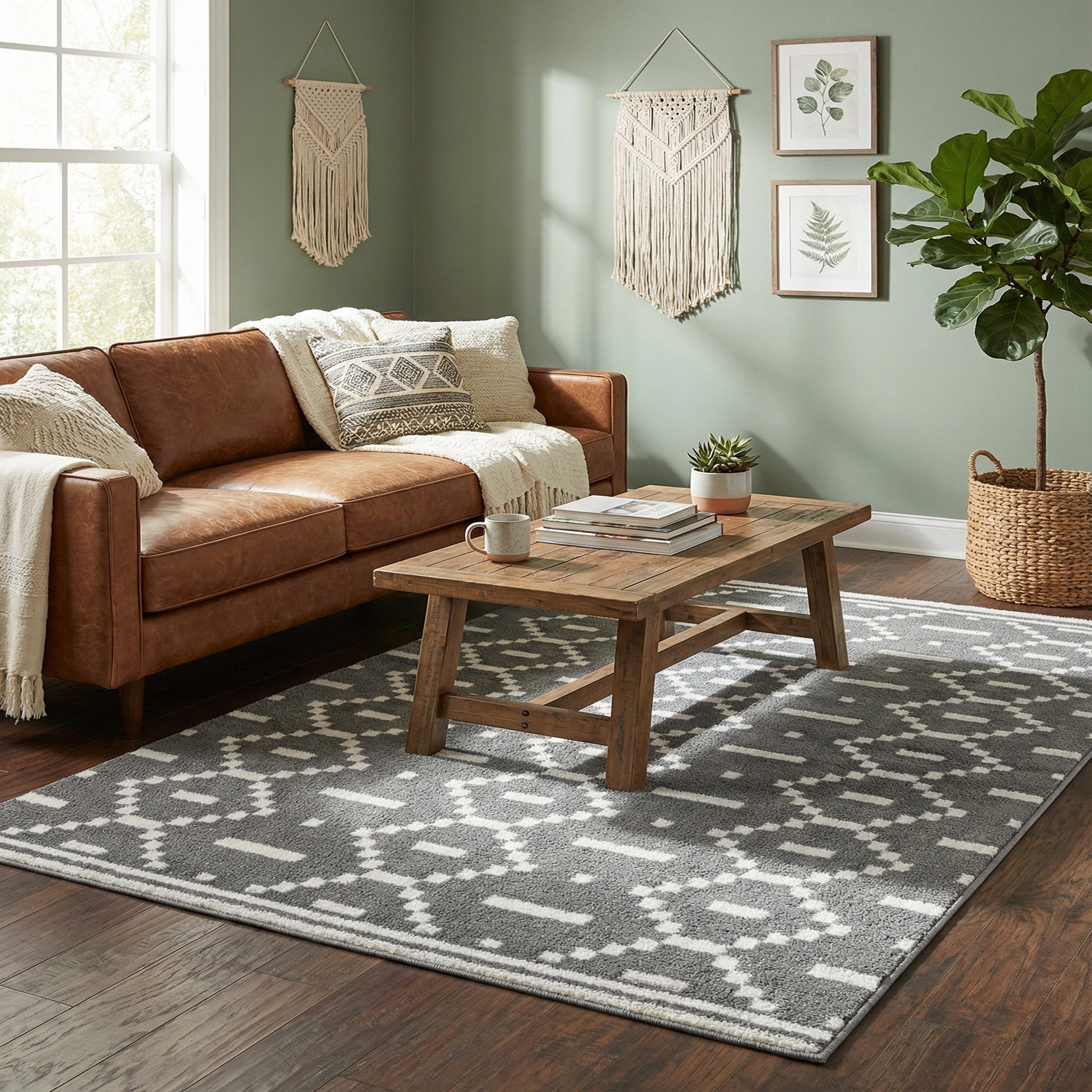 This design fits clean, contemporary interiors as well as transitional spaces — use it to anchor a living area under a coffee table, layer it in a bedroom, or define an entryway or home office. Pair with light wood furniture and neutral linens for a Scandinavian feel, or combine with charcoal leathers and metal accents for a more industrial approach; the gray-and-ivory palette adapts easily to both bright and moody color schemes.