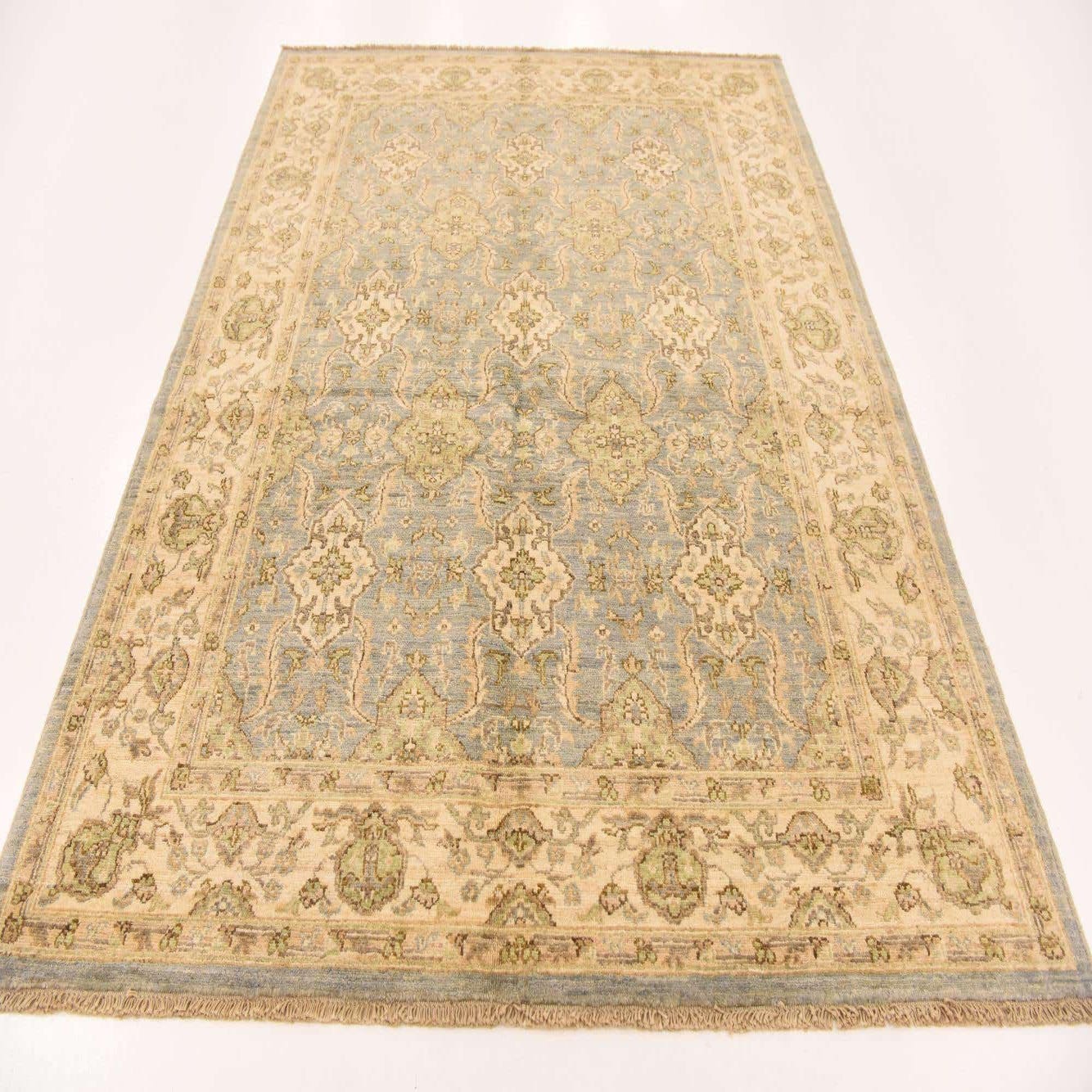 A 4x6 rectangular Peshawar Ziegler Persian rug with a light gray-blue field and an ornate beige border, featuring intricate floral and medallion patterns in muted tones.