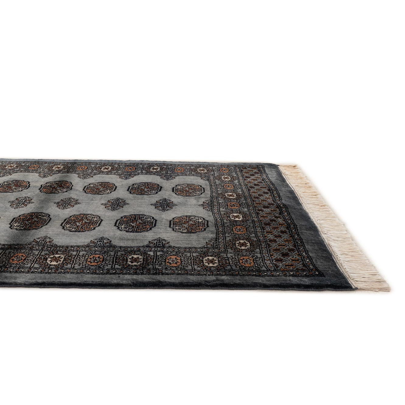 Primary color is Gray. Colors in this rug include: Gray, Black, Brown.