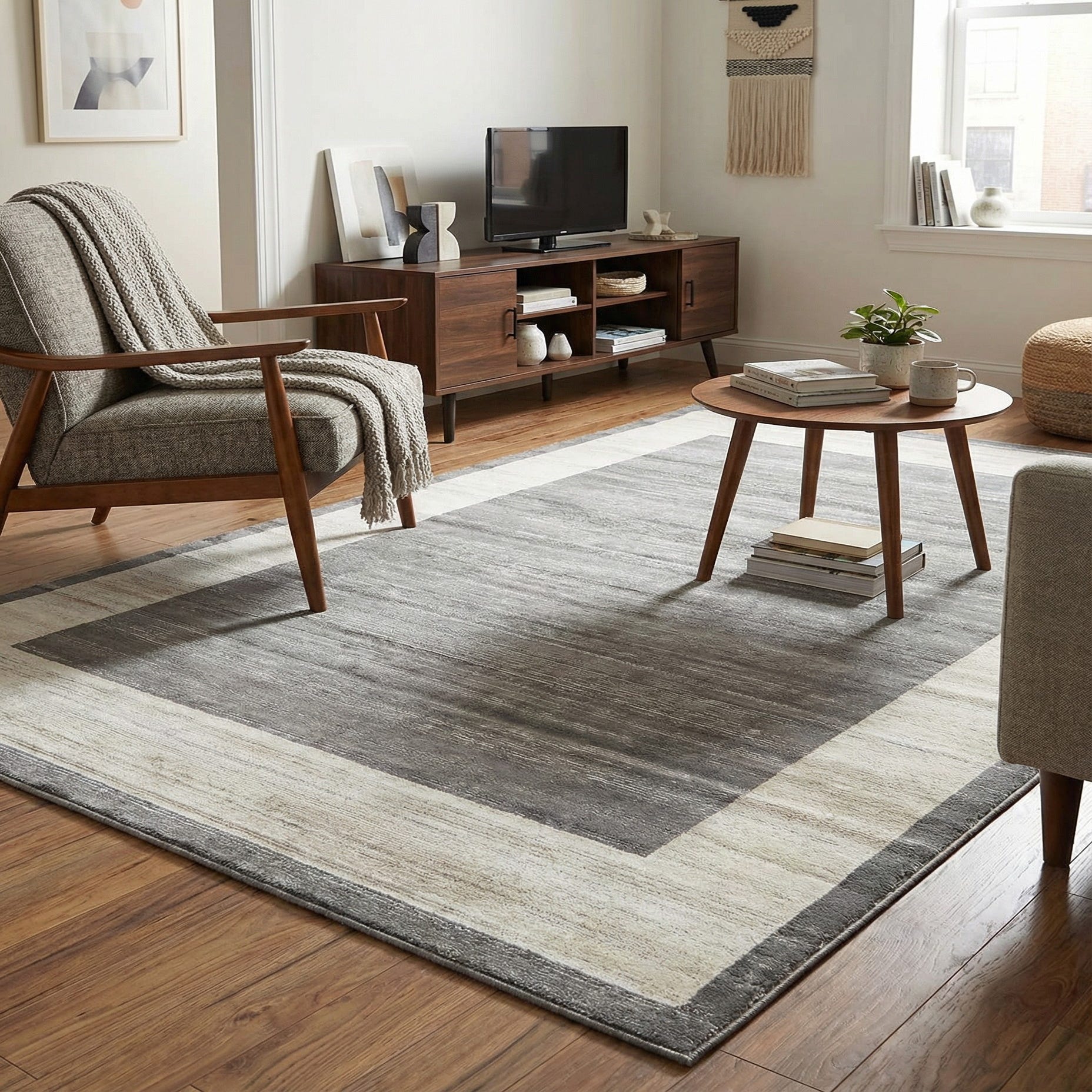Machine-made from 70% polypropylene and 30% polyester, this rug balances durability with a soft hand. It’s an easy choice for contemporary and transitional spaces — place it under a coffee table to ground a living room, layer it beneath a bed to add texture to a bedroom, or use it in a home office to introduce a calm, professional base. The neutral gray-and-ivory palette pairs well with cool-tone furnishings, light woods, metal accents, and Scandinavian or coastal-inspired décor.