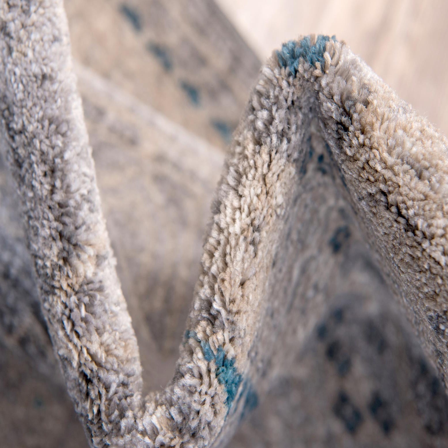 This rug works well in a variety of interiors — place it under a coffee table in a light, casual living room to anchor seating, slide it into a bedroom to add quiet pattern beneath a bed, or use it in an entry or home office where a calm, neutral foundation is needed. The gray and ivory palette with light blue highlights pairs nicely with natural wood tones, cool-toned upholstery, and coastal or modern farmhouse decor, and it also layers easily with woven throws or leather furniture for a collected, comfortable look.