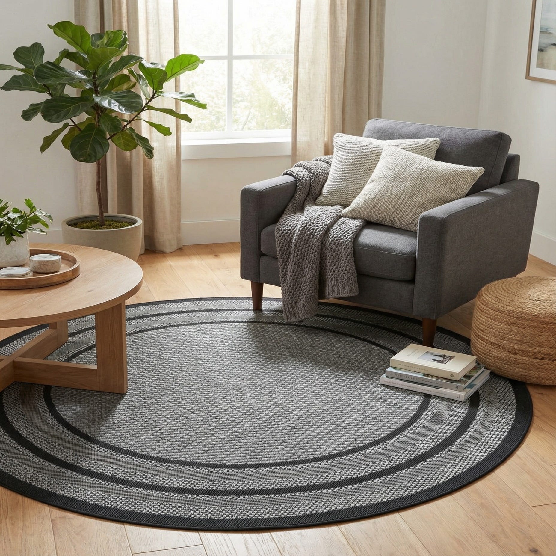 5' 3 x 5' 3 Washable Border Indoor / Outdoor Round Rug