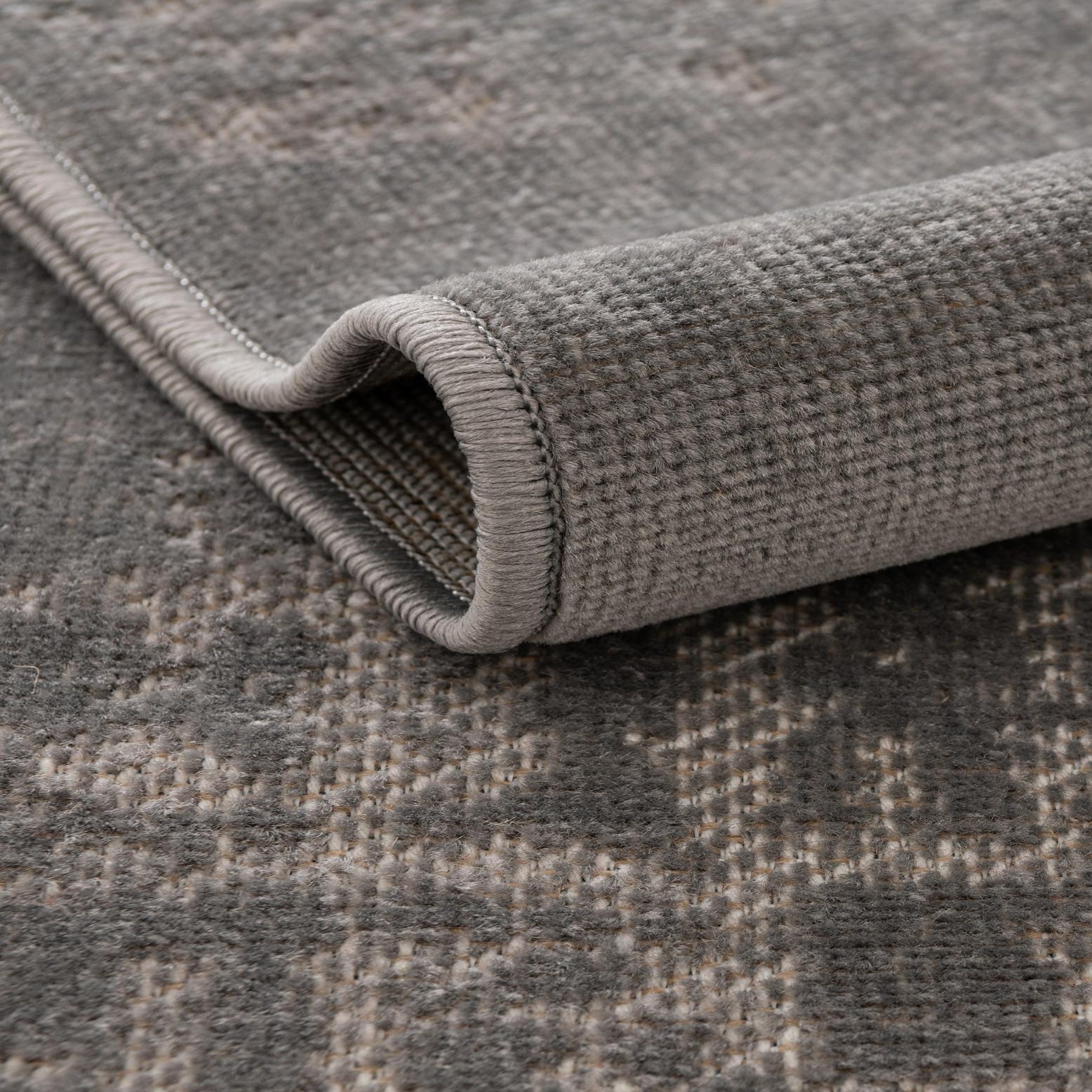 Primary color is Gray. Colors in this rug include: Gray, Ivory.