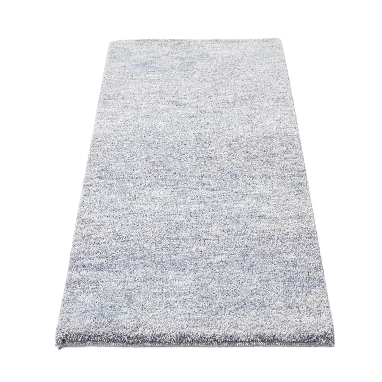 A 5 ft runner rug from the Nepal collection, featuring a modern solid gray and silver pattern with a high pile.